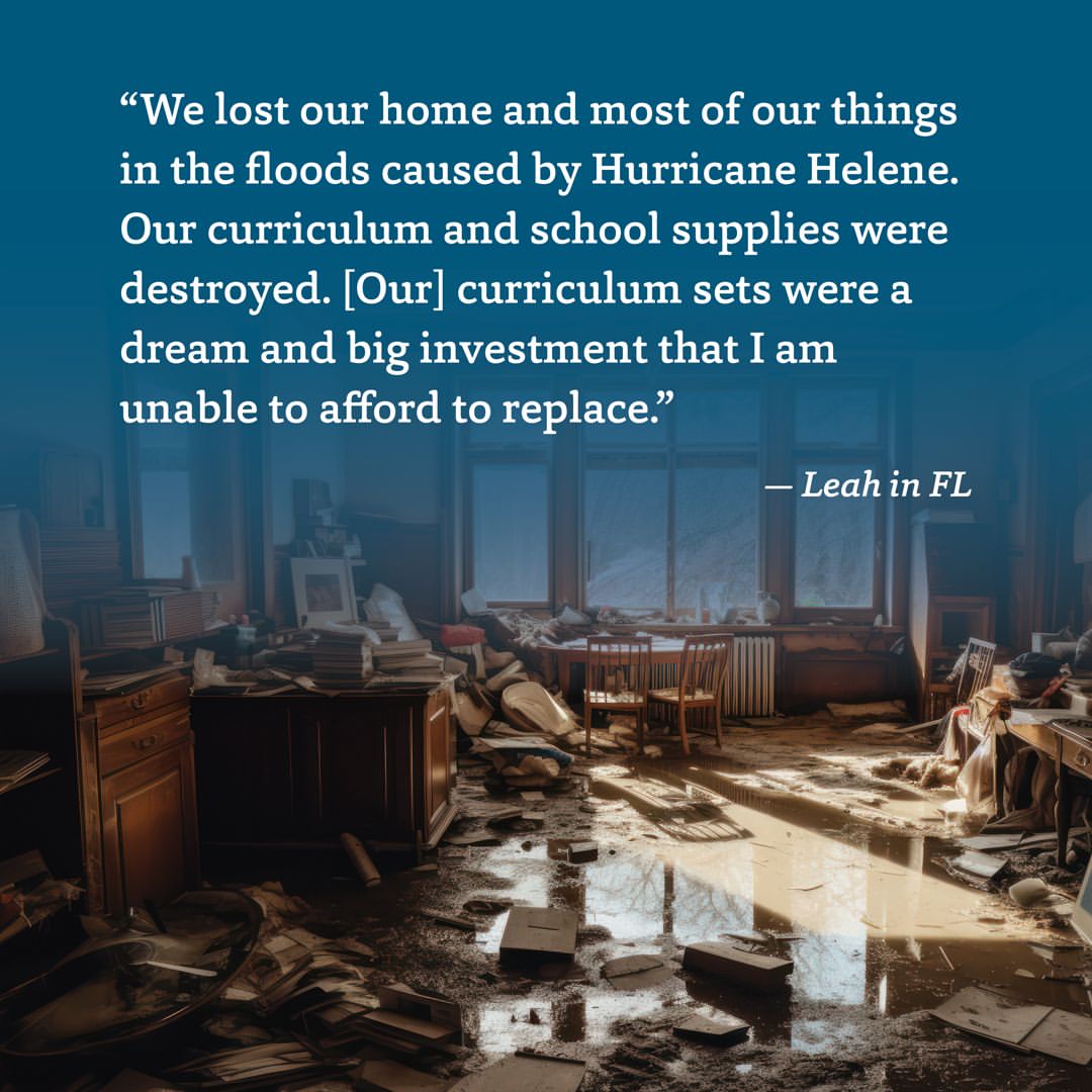 Keluarga-keluarga homeschooling di wilayah Tenggara Amerika Serikat saat ini menghadapi situasi yang sangat sulit setelah dilanda badai. Badai yang terjadi baru-baru ini telah menghancurkan rumah dan kehidupan banyak keluarga, meninggalkan mereka dalam keadaan putus asa. Dalam upaya untuk membantu mereka, sebuah tim relawan sedang disiapkan untuk dikirim ke Carolina Utara.