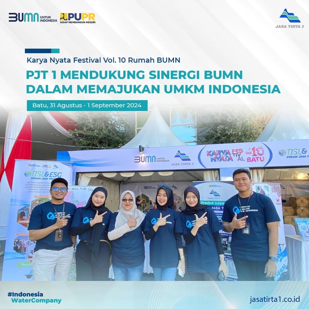 Kota Batu, Indonesia - Karya Nyata Festival (KNF) Vol. 10 berlangsung pada tanggal 31 Agustus hingga 1 September 2024. Acara ini merupakan inisiatif penting yang menunjukkan komitmen Badan Usaha Milik Negara (BUMN) untuk mendukung Usaha Mikro, Kecil, dan Menengah (UMKM) di tanah air. PJT I adalah salah satu BUMN yang berpartisipasi dalam festival ini, berfungsi sebagai mitra untuk mendukung pertumbuhan UMKM.