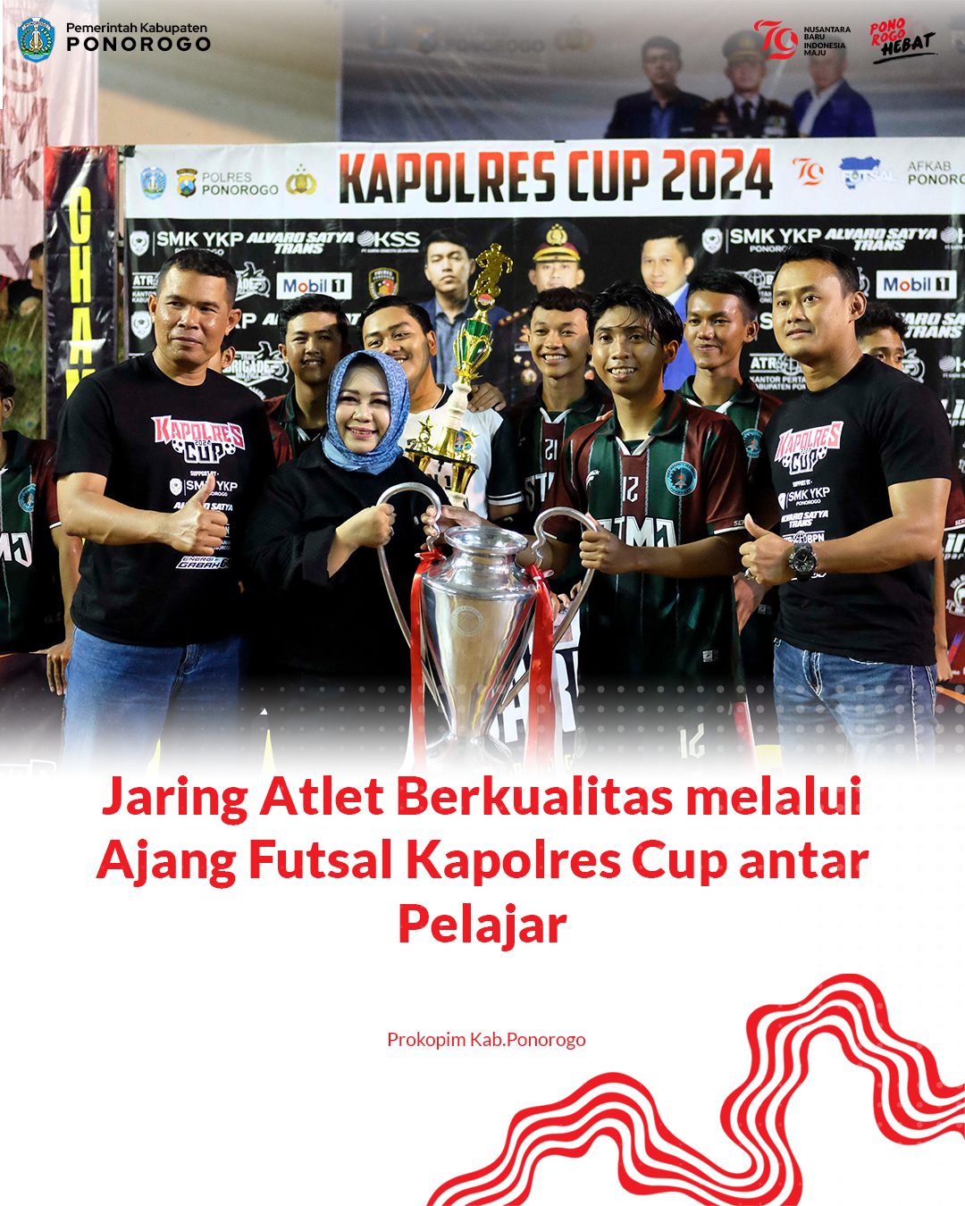 Liga Pelajar Futsal Kapolres Cup yang digelar sejak 24 Agustus hingga 31 Agustus 2024 di GOR Singodimedjo Ponorogo resmi berakhir. Pertandingan ini diikuti oleh puluhan tim dari berbagai kategori, menunjukkan semangat tinggi dari para pelajar dalam bertanding.