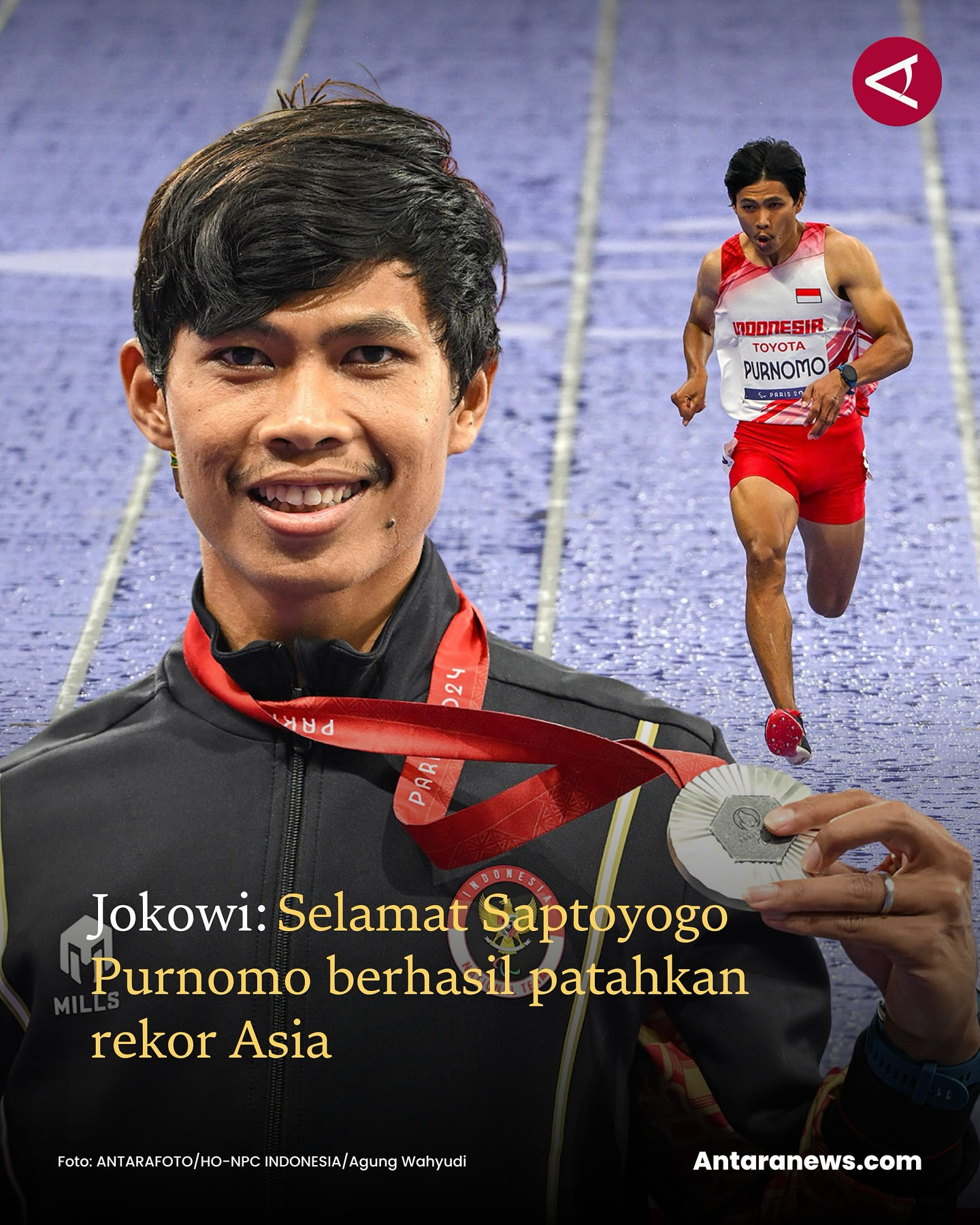 Presiden Joko Widodo memberikan ucapan selamat kepada atlet para atletik Indonesia, Saptoyogo Purnomo, atas prestasinya yang membanggakan di Paralimpiade Paris 2024. Dalam kompetisi tersebut, Saptoyogo berhasil meraih medali perak dan sekaligus memecahkan rekor Asia.