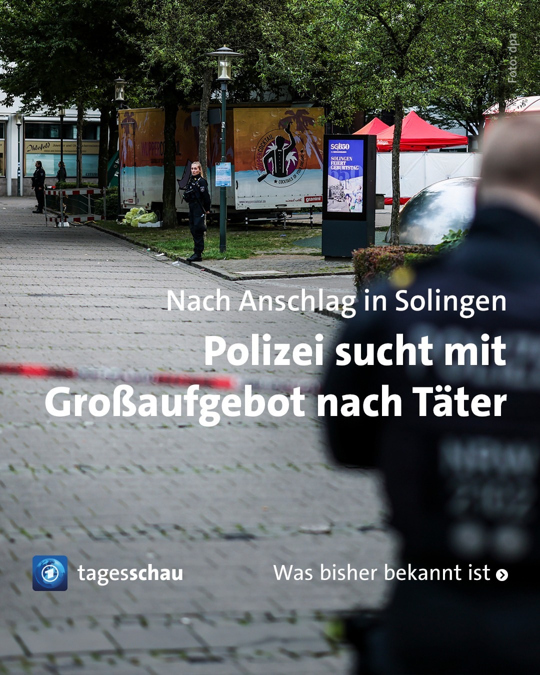 Polisi telah mendirikan beberapa pos pemeriksaan di Solingen untuk membantu pencarian pelaku. Masyarakat diimbau untuk memberikan informasi kepada polisi, baik itu berupa foto atau video yang mungkin terkait dengan insiden tersebut melalui portal online kepolisian.