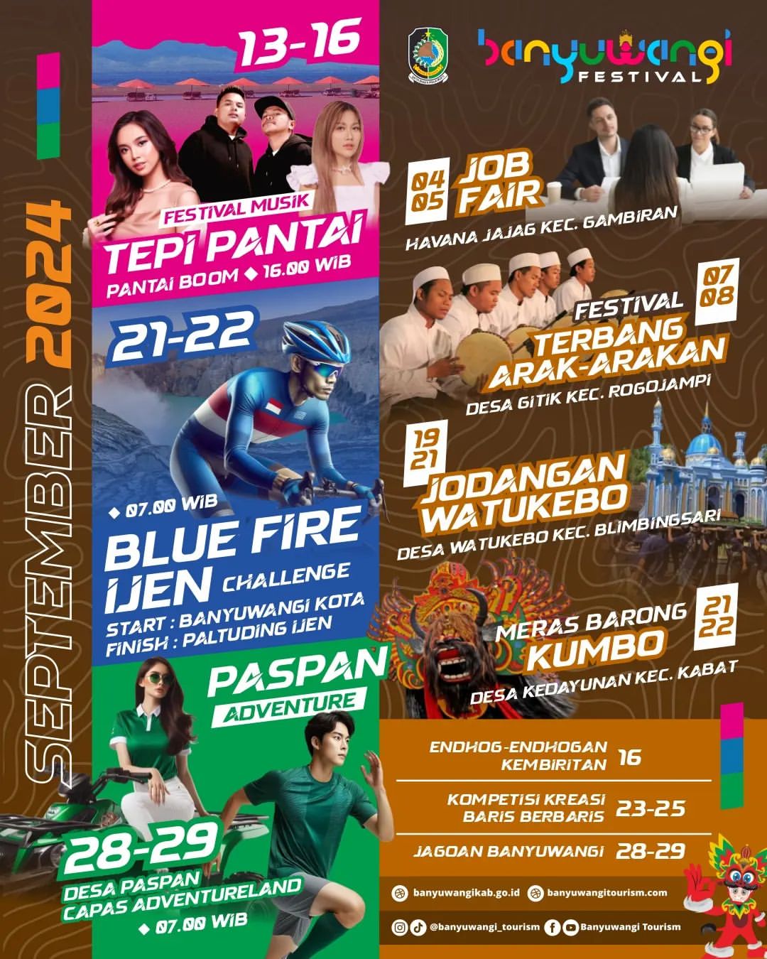 Banyuwangi Festival 2024 siap digelar pada bulan September mendatang. Festival ini merupakan salah satu acara terbesar yang diselenggarakan di Banyuwangi, Jawa Timur. Acara ini menawarkan berbagai pengalaman menarik yang dapat dinikmati oleh semua kalangan, terutama anak muda.