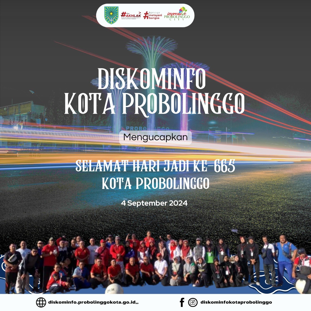 Kota Probolinggo baru saja merayakan hari jadinya yang ke-665. Perayaan ini dilakukan oleh keluarga besar Dinas Komunikasi dan Informatika (Diskominfo) Kota Probolinggo, yang turut menyampaikan ucapan selamat untuk kota tercinta ini.
