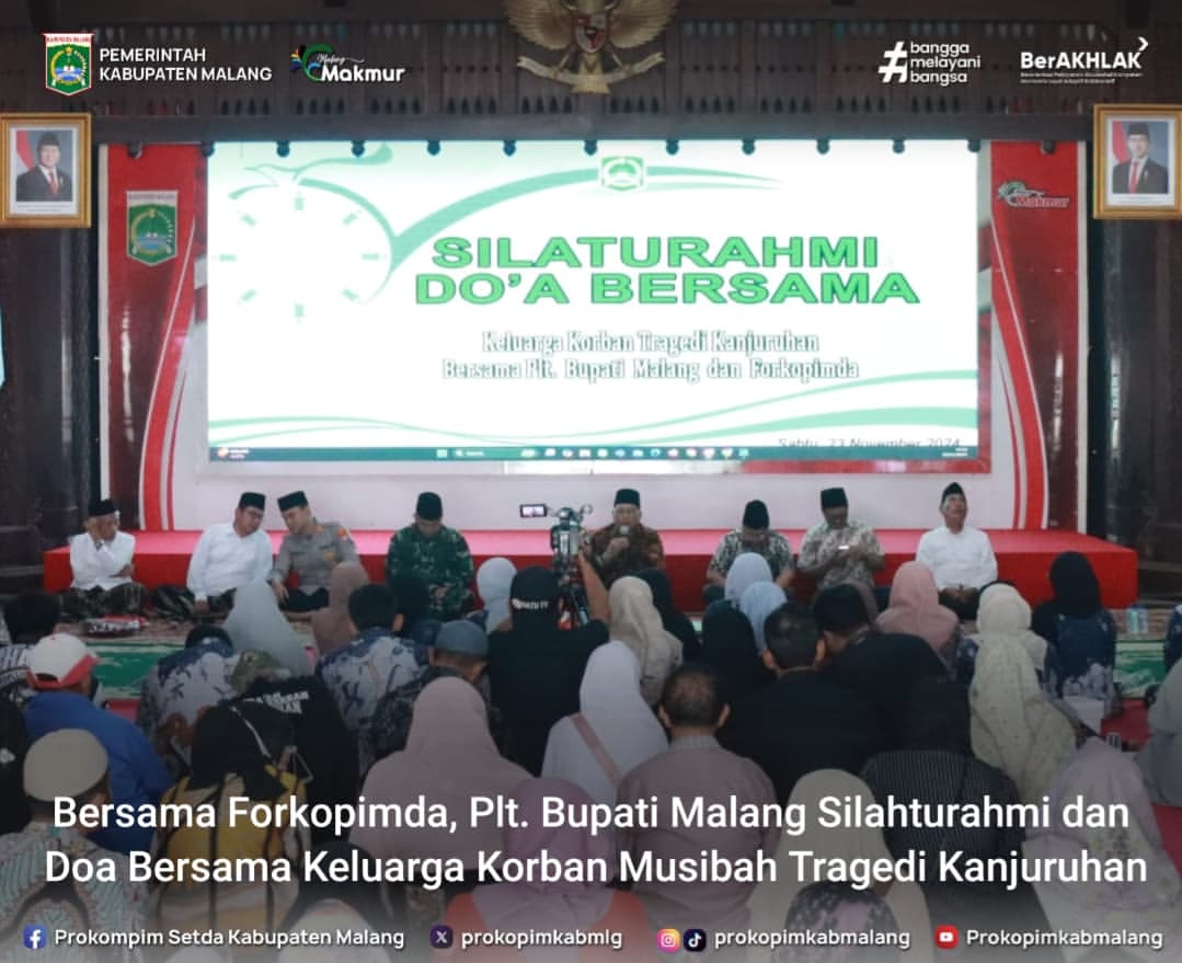 KEPANJEN – Pada hari Sabtu, 23 November 2024, Plt. Bupati Malang, Drs. H. Didik Gatot Subroto, SH., M.H, menghadiri acara silahturahmi dan doa bersama untuk keluarga korban tragedi Kanjuruhan. Acara ini berlangsung di Pendopo Kabupaten Malang dan dihadiri oleh Forkopimda Kabupaten Malang serta sejumlah keluarga korban.