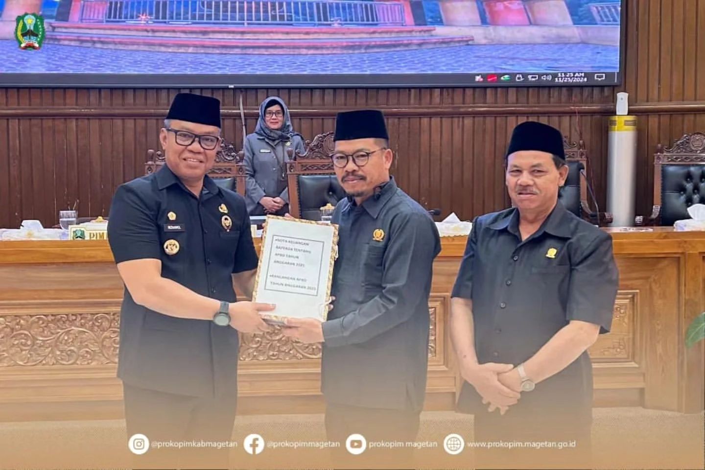 Magetan, 25 November 2024 - Pada hari Senin, Bupati Magetan, Nizhamul, S.E., M.M., memberikan penjelasan mengenai nota keuangan untuk Rancangan Peraturan Daerah Anggaran Pendapatan dan Belanja Daerah (APBD) Tahun Anggaran 2025. Penjelasan ini disampaikan dalam Rapat Paripurna yang dipimpin oleh Ketua DPRD Magetan, Suratno, dan dihadiri oleh anggota DPRD, Forkopimda, Kepala OPD, serta insan pers dan undangan lainnya.