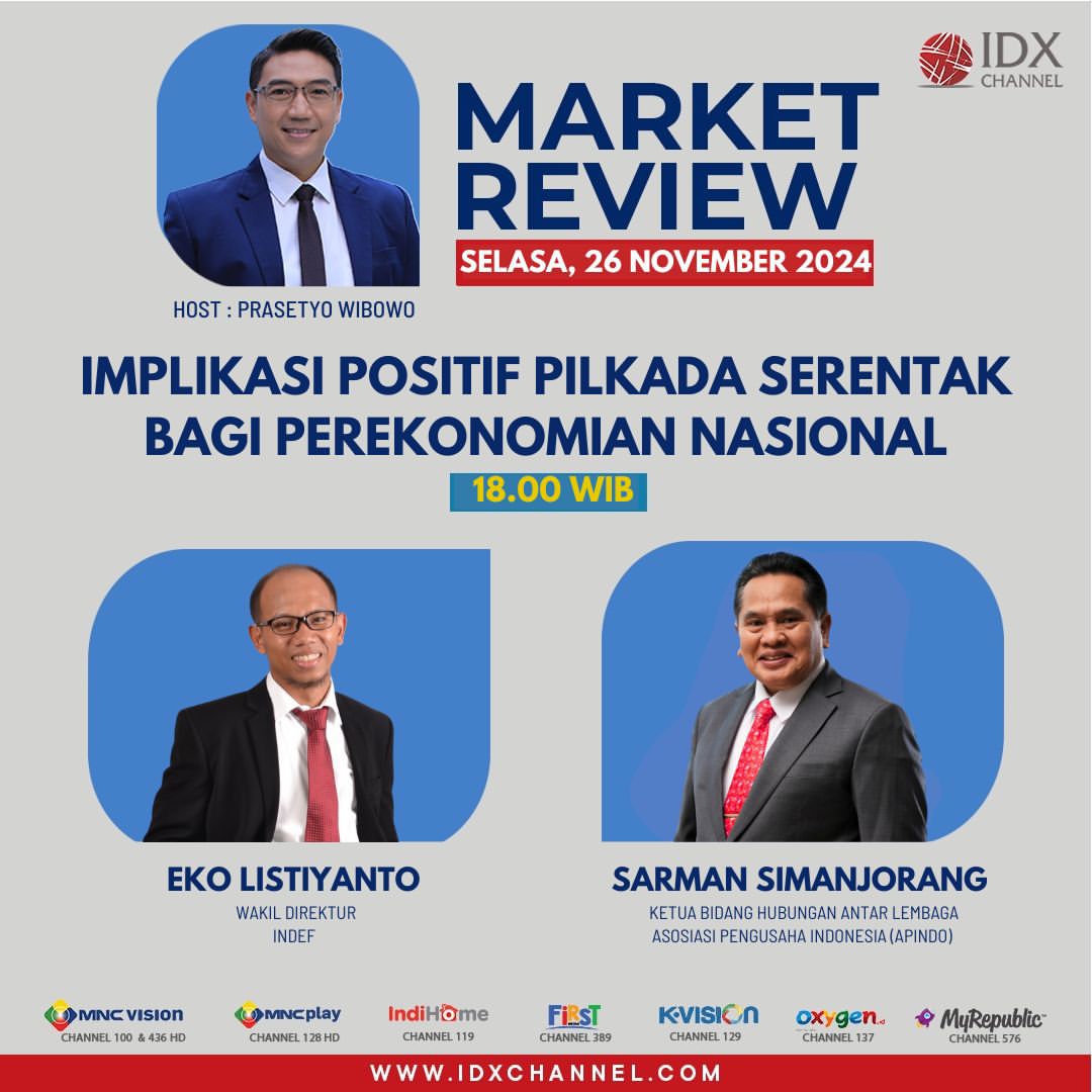 Saksikan pembahasan selengkapnya dalam program Market Review bersama Prasetyo Wibowo pada Selasa, 26 November 2024, pukul 18.00 – 18.30 WIB. Program ini dapat disaksikan secara langsung di IDX Channel dan berbagai platform lainnya.