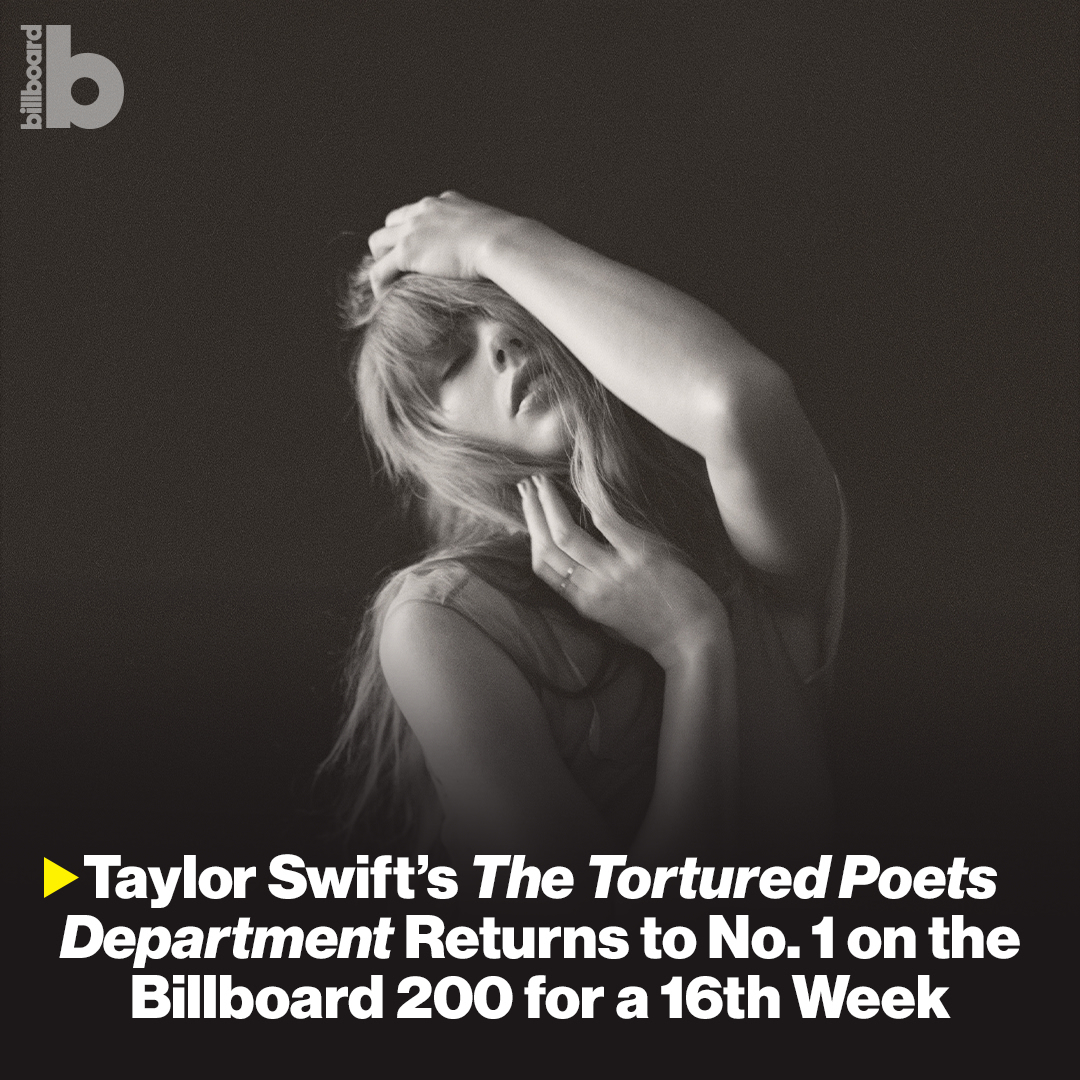 Album 'The Tortured Poets Department' milik Taylor Swift berhasil kembali menduduki posisi pertama di tangga lagu Billboard 200 untuk minggu ke-16. Kembalinya album ini ke posisi teratas terjadi setelah perilisan fisik pertama dari edisi deluxe 'Anthology'.