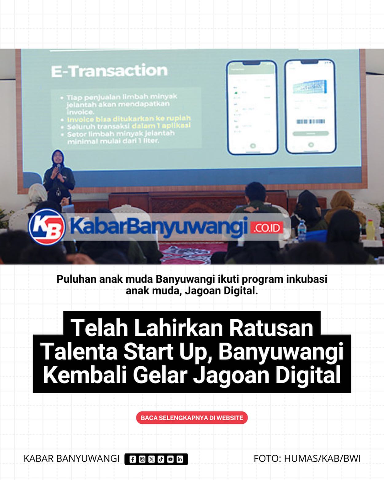Pemerintah Kabupaten Banyuwangi telah meluncurkan kembali program inkubasi anak muda yang dikenal dengan nama Jagoan Digital. Program ini rutin diadakan setiap tahun sejak 2021 dan tahun ini diikuti oleh 85 peserta. Jagoan Digital bertujuan untuk memberikan bekal keterampilan kepada generasi muda agar dapat membangun bisnis start-up yang sukses.