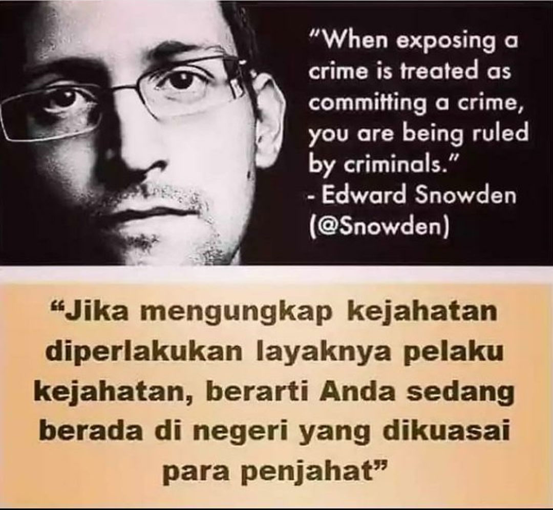 "Tidak ada cara untuk mengabaikan privasi. Karena kebebasan seseorang saling terkait, menyerahkan privasi sendiri berarti menyerahkan privasi semua orang," kata Snowden. Pernyataan ini menunjukkan bahwa jika kita membiarkan pemerintah mengawasi kita tanpa batas, kita berisiko kehilangan kebebasan individual.