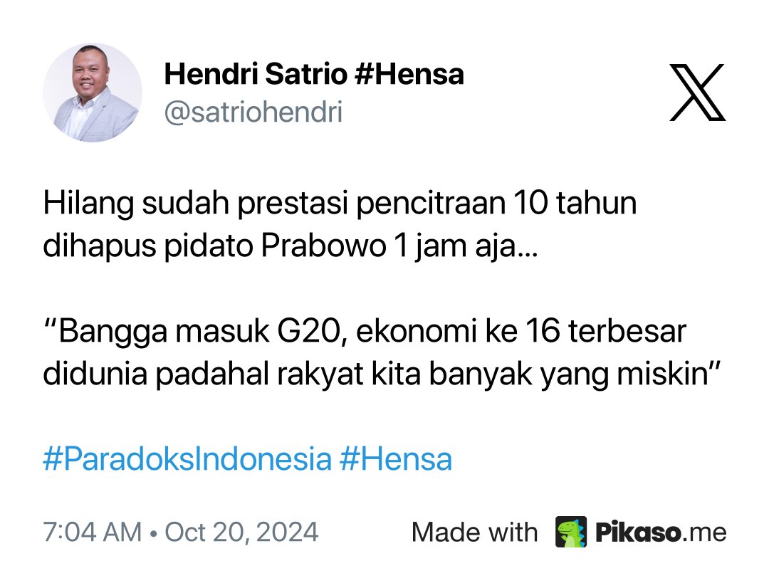 Sebelum pidato ini, Hendri Satrio juga menyatakan optimisme terhadap Prabowo di media sosial, dengan menyebutnya sebagai presiden yang gemar membaca buku-buku baik dan berkualitas. Hal ini menunjukkan harapannya agar Prabowo dapat mengambil keputusan yang bijak dan sesuai untuk kemajuan bangsa.