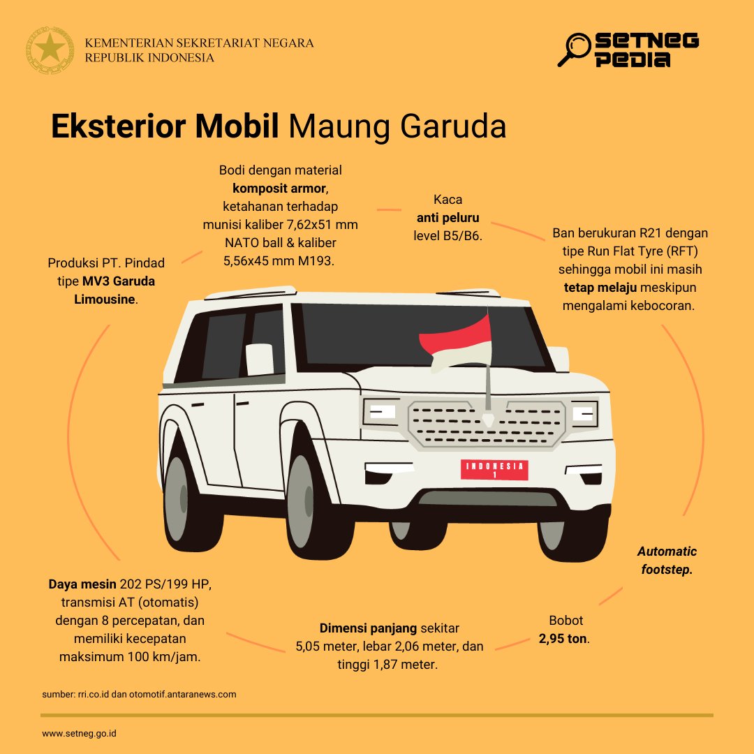 Fitur: Versi Limousine Maung Garuda, yang dikhususkan untuk penggunaan pemerintah, memiliki spesifikasi yang sesuai untuk pejabat tinggi. Desainnya yang kokoh dan sebagian besar komponen yang diproduksi di Indonesia menunjukkan kemampuan rekayasa nasional.