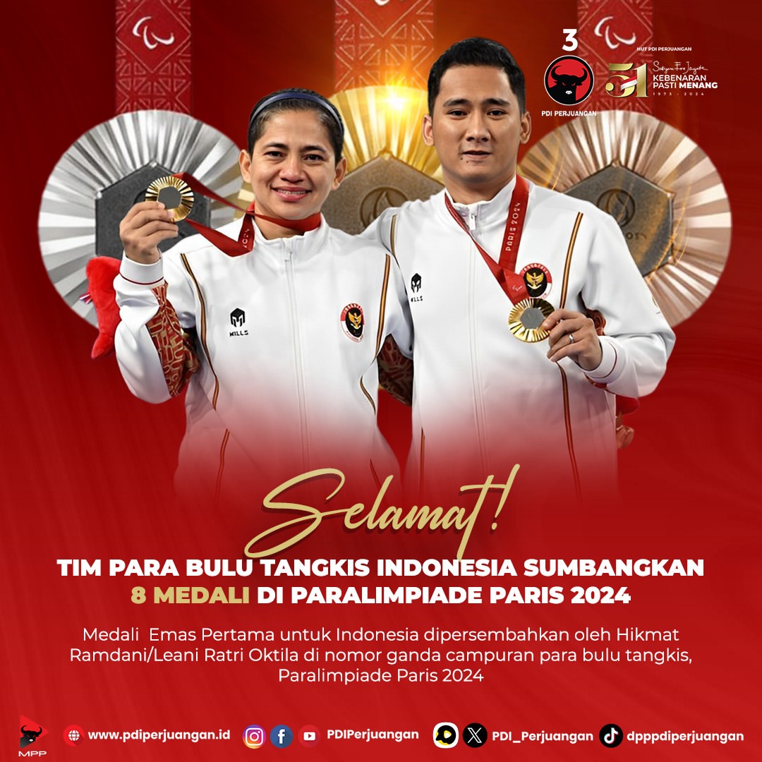 Atlet tim para bulu tangkis Indonesia sukses dalam ajang Paralimpiade Paris 2024 dengan meraih delapan medali. Dari total medali yang diperoleh, satu di antaranya adalah medali emas, disertai dengan empat medali perak dan tiga medali perunggu. Prestasi ini menunjukkan kebangkitan dan semangat juang luar biasa dari para atlet Indonesia.
