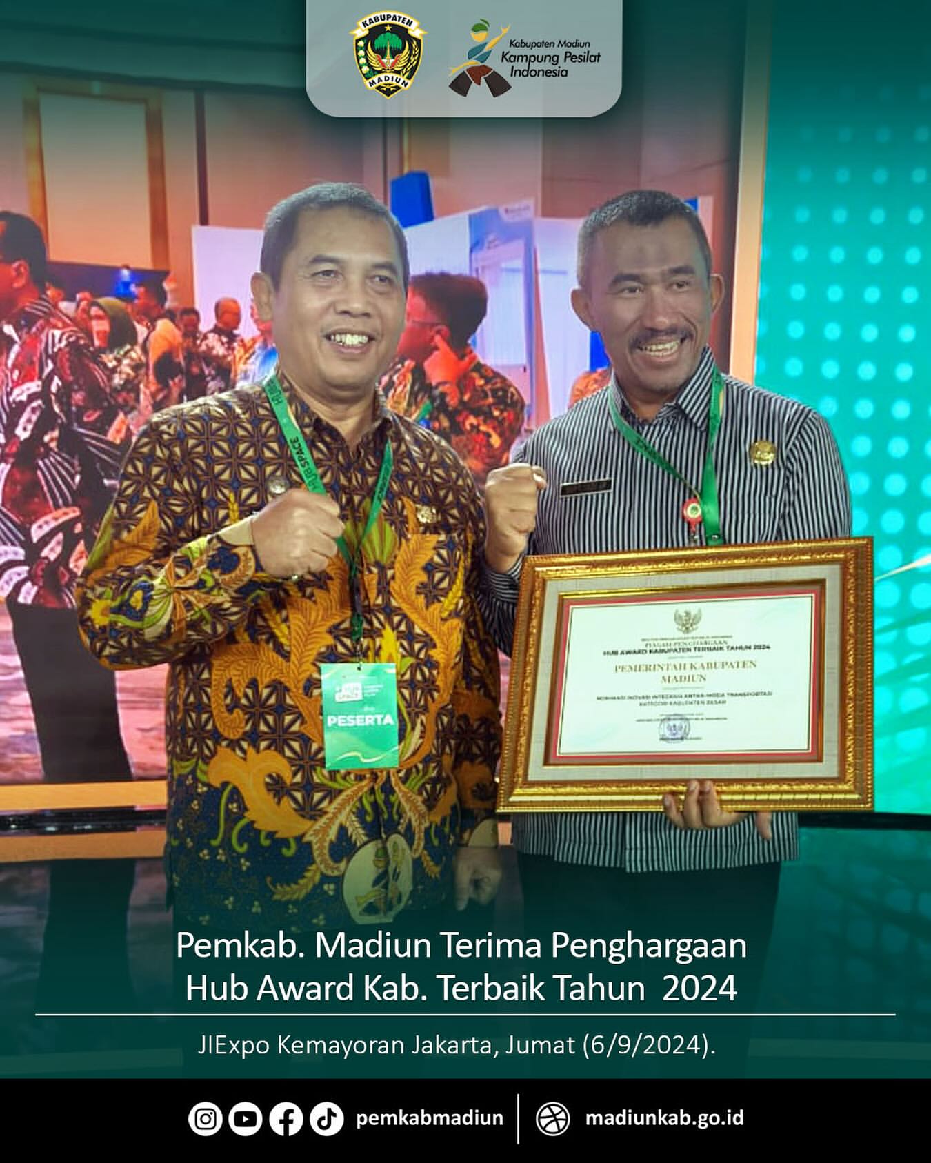 Pemerintah Kabupaten Madiun melalui Dinas Perhubungan terus berupaya meningkatkan kualitas transportasi publik untuk kenyamanan warganya. Usaha ini berbuah manis dengan diraihnya penghargaan Hub Award Kabupaten Terbaik tahun 2024, khususnya di Nominasi Integrasi Antar Moda Transportasi untuk kategori Kabupaten Besar.