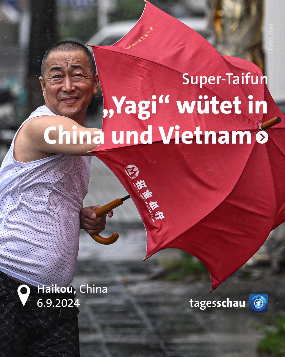 Yagi, yang merupakan salah satu badai terkuat di Asia tahun ini, menghantam Pulau Hainan pada hari Jumat dengan kecepatan angin mencapai 234 kilometer per jam. Angin kencang dan hujan deras mengakibatkan banyak pohon dan mobil tumbang. Selain itu, banyak jalan yang terendam banjir, dan lebih dari 800.000 rumah mengalami pemadaman listrik.