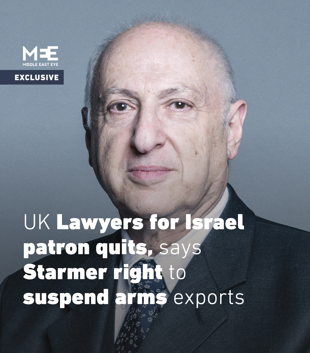 Lord Carlile, seorang anggota crossbench di House of Lords Inggris, baru-baru ini mengumumkan pengunduran dirinya sebagai patron dari organisasi UK Lawyers for Israel. Keputusan ini diambil karena dia mendukung larangan sebagian terhadap ekspor senjata ke Israel yang diumumkan oleh pemerintah Perdana Menteri Keir Starmer. Aksi tersebut mengisyaratkan pergeseran pandangan di kalangan pendukung Israel di Inggris.