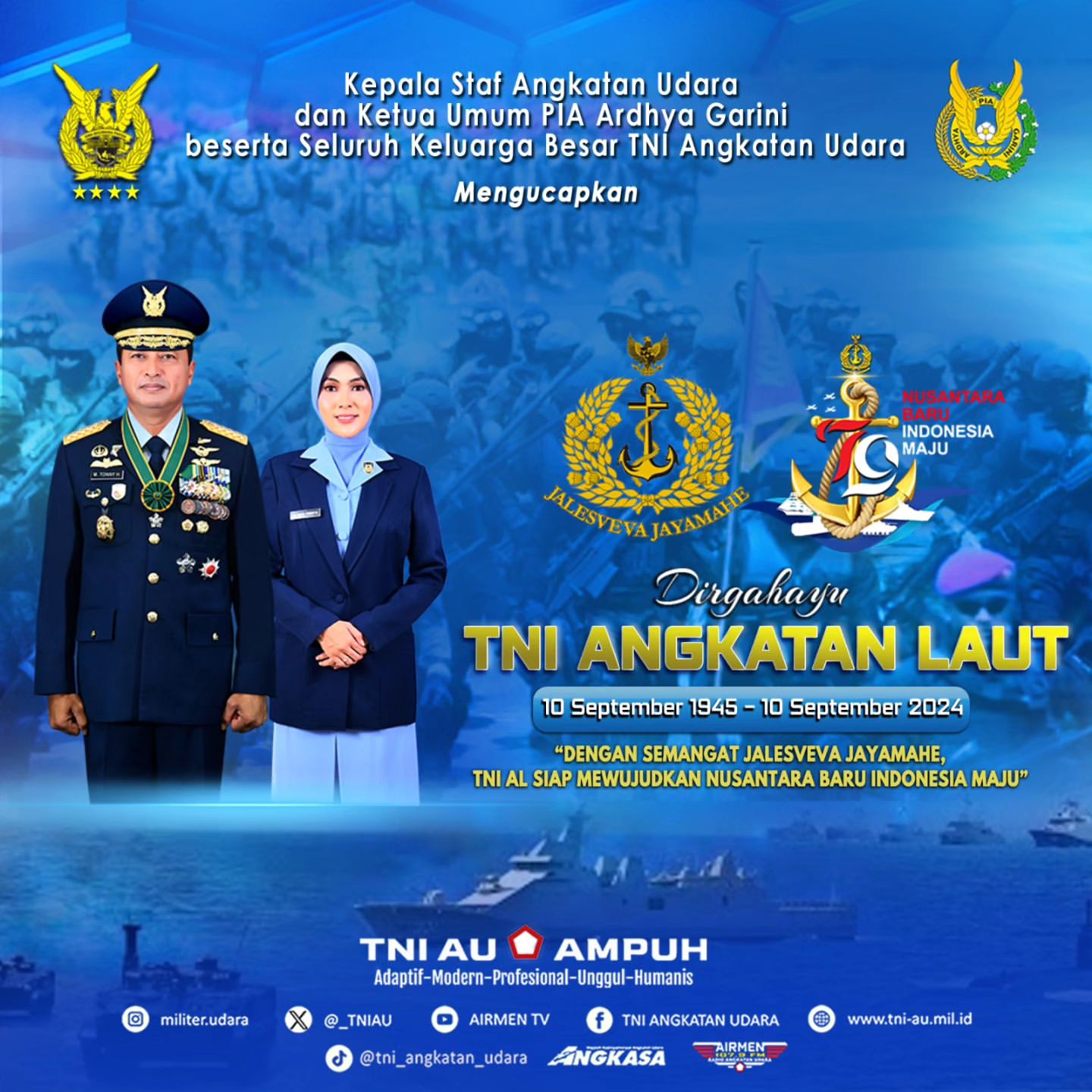 Pada tanggal 10 September 2024, TNI Angkatan Laut merayakan ulang tahunnya yang ke-79. Untuk memperingati momen penting ini, Kepala Staf Angkatan Udara, Marsekal TNI Tonny Harjono, mengucapkan selamat dirgahayu kepada seluruh anggota TNI Angkatan Laut.