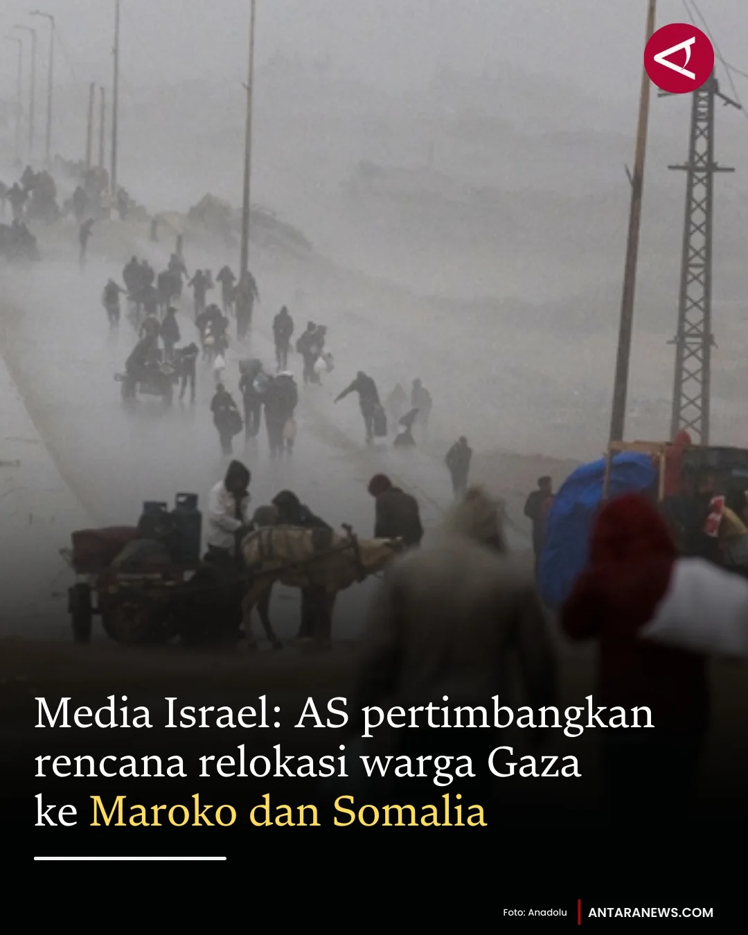 Amerika Serikat saat ini sedang mempertimbangkan rencana untuk memindahkan warga Palestina yang tinggal di Jalur Gaza. Menurut laporan dari media Israel N12, rencana ini melibatkan pemindahan warga Palestina ke Maroko dan dua wilayah otonom di Somalia, yaitu Somaliland dan Puntland.