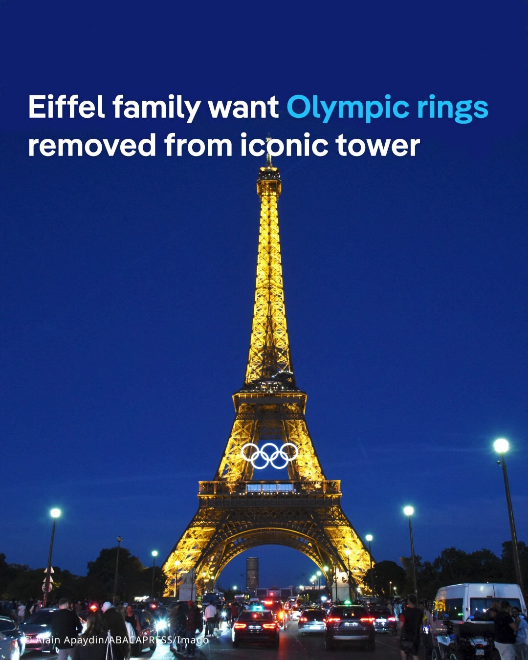 Keluarga desainer terkenal Menara Eiffel, Gustave Eiffel, mengekspresikan keberatan mereka terhadap rencana untuk meninggalkan cincin Olimpiade yang terpasang di menara tersebut. Mereka berkomitmen untuk melawan setiap perubahan yang dinilai negatif terhadap penghormatan terhadap karya nenek moyang mereka.