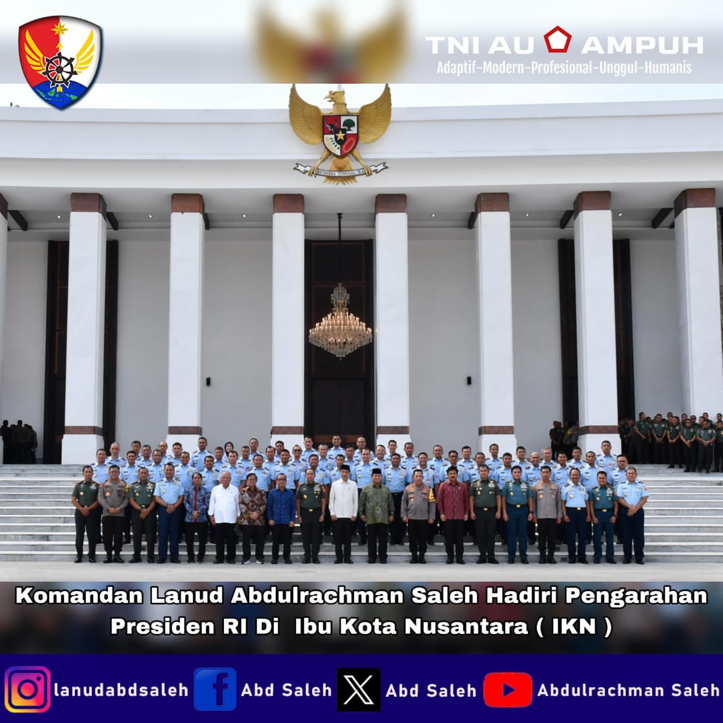 Dalam sebuah acara penting, Komandan Lanud Abdulrachman Saleh, Marsma TNI Firman Wirayuda, S.T., M.Sos.Sc., menghadiri pengarahan yang diberikan oleh Presiden Republik Indonesia, Ir. H. Joko Widodo. Acara ini berlangsung di Istana Negara, Ibu Kota Nusantara (IKN), Penajam, Kalimantan Timur, pada hari Kamis, tanggal 12 September 2024.