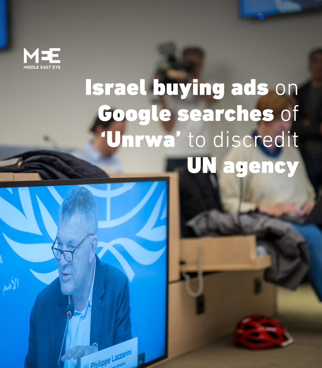 Pemerintah Israel baru-baru ini membeli iklan di hasil pencarian Google untuk istilah "Unrwa", yang merupakan singkatan dari United Nations Relief and Works Agency, sebuah badan PBB yang bertugas memberikan bantuan kepada pengungsi Palestina. Langkah ini dimaksudkan untuk memperlemah kredibilitas UNRWA, sebagaimana dilaporkan oleh Wired pada hari Senin.