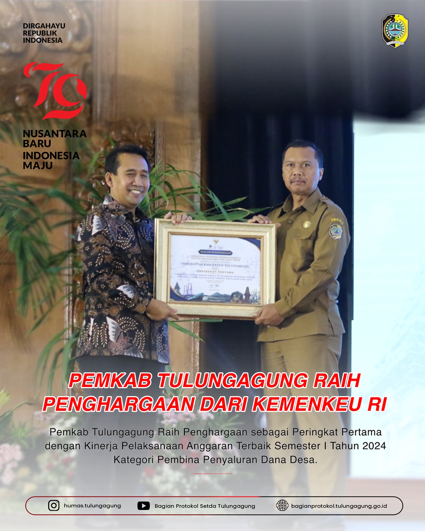 Dengan penghargaan ini, diharapkan Pemerintah Kabupaten Tulungagung semakin berkomitmen untuk menjalankan anggaran secara efisien dan transparan, demi kesejahteraan masyarakat.