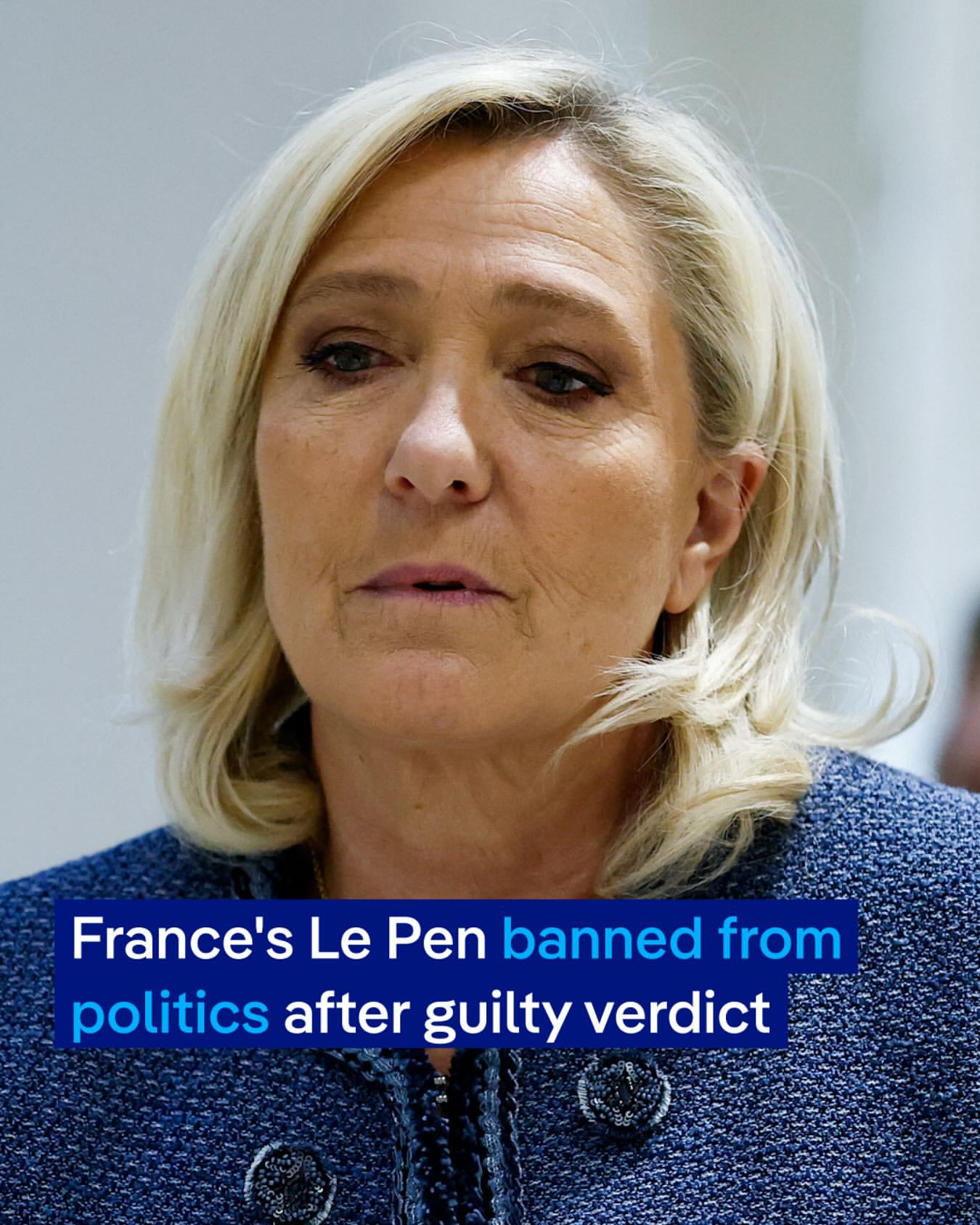 Hukuman ini akan menghalangi Le Pen untuk mencalonkan diri dalam pemilihan presiden 2027, kecuali jika ia berhasil mengajukan banding sebelum itu. Selain larangan menjabat, Le Pen juga dijatuhi hukuman penjara selama empat tahun. Namun, ia tidak akan dipenjara, karena dua tahun dari hukumannya ditangguhkan dan dua tahun lainnya akan dijalani di luar penjara dengan menggunakan gelang elektronik.
