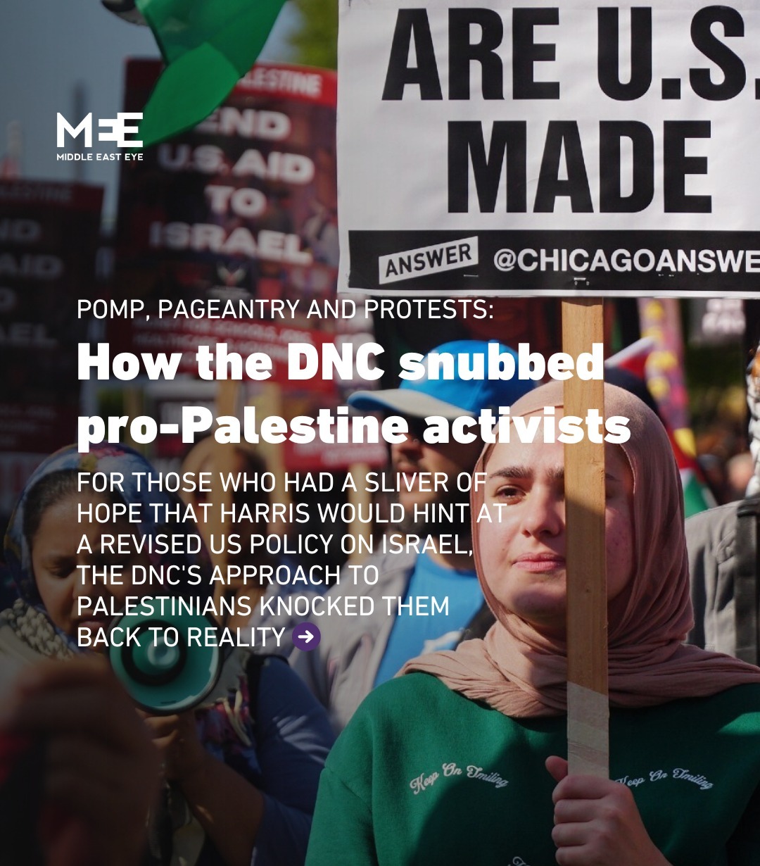 Bagi mereka yang berharap bahwa Kamala Harris, calon presiden, akan memberikan sinyal adanya perubahan kebijakan Amerika Serikat terhadap Israel, pendekatan pada Konvensi Nasional Partai Demokrat yang tidak memerhatikan kondisi Palestina mengecewakan harapan mereka. Hal ini menunjukkan bahwa dukungan untuk Israel masih sangat kuat di kalangan pemerintah AS.