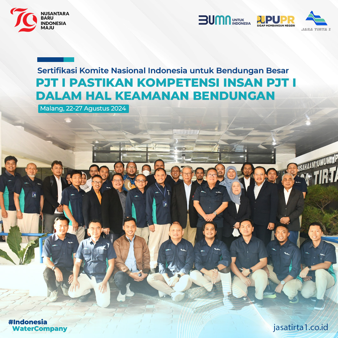 Perum Jasa Tirta I (PJT I) baru saja menyelenggarakan acara penting yang bertujuan untuk meningkatkan kompetensi karyawan dalam pengelolaan bendungan. Kegiatan ini dilaksanakan pada 26-27 Agustus 2024 di Kantor Pusat PJT I. Acara ini bekerja sama dengan Komite Nasional Indonesia untuk Bendungan Besar (KNIBB) dan disebut sebagai "Sertifikasi Keahlian Bendungan Besar."