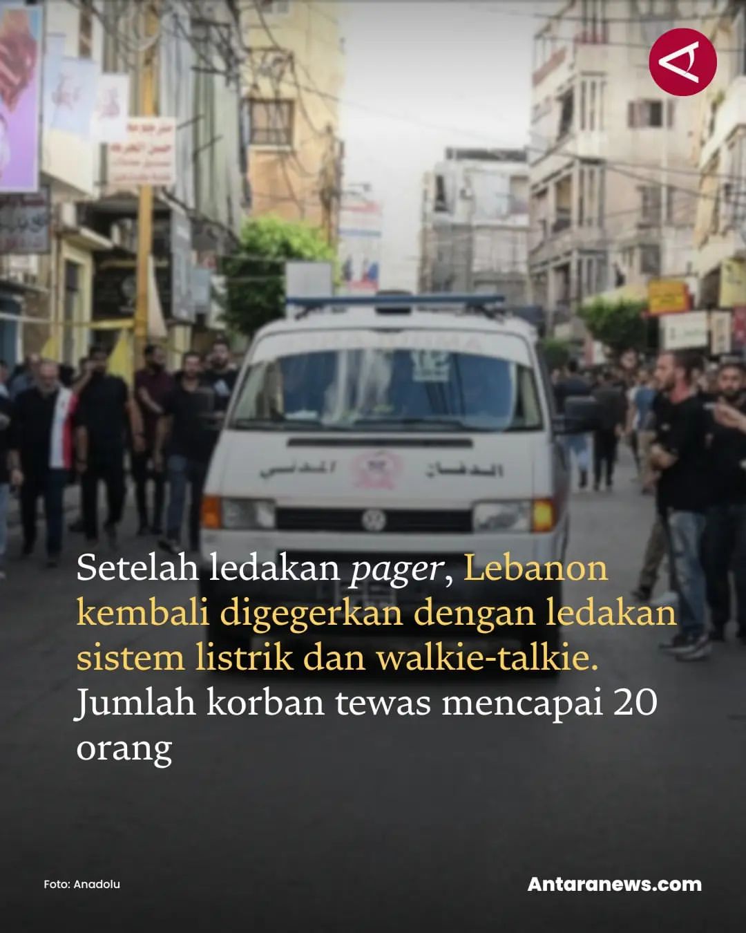 Lebanon, Rabu - Jumlah korban jiwa akibat serangkaian ledakan perangkat komunikasi di berbagai wilayah di Lebanon meningkat menjadi 20 orang. Hal ini disampaikan oleh pusat tanggap darurat Kementerian Kesehatan Lebanon.