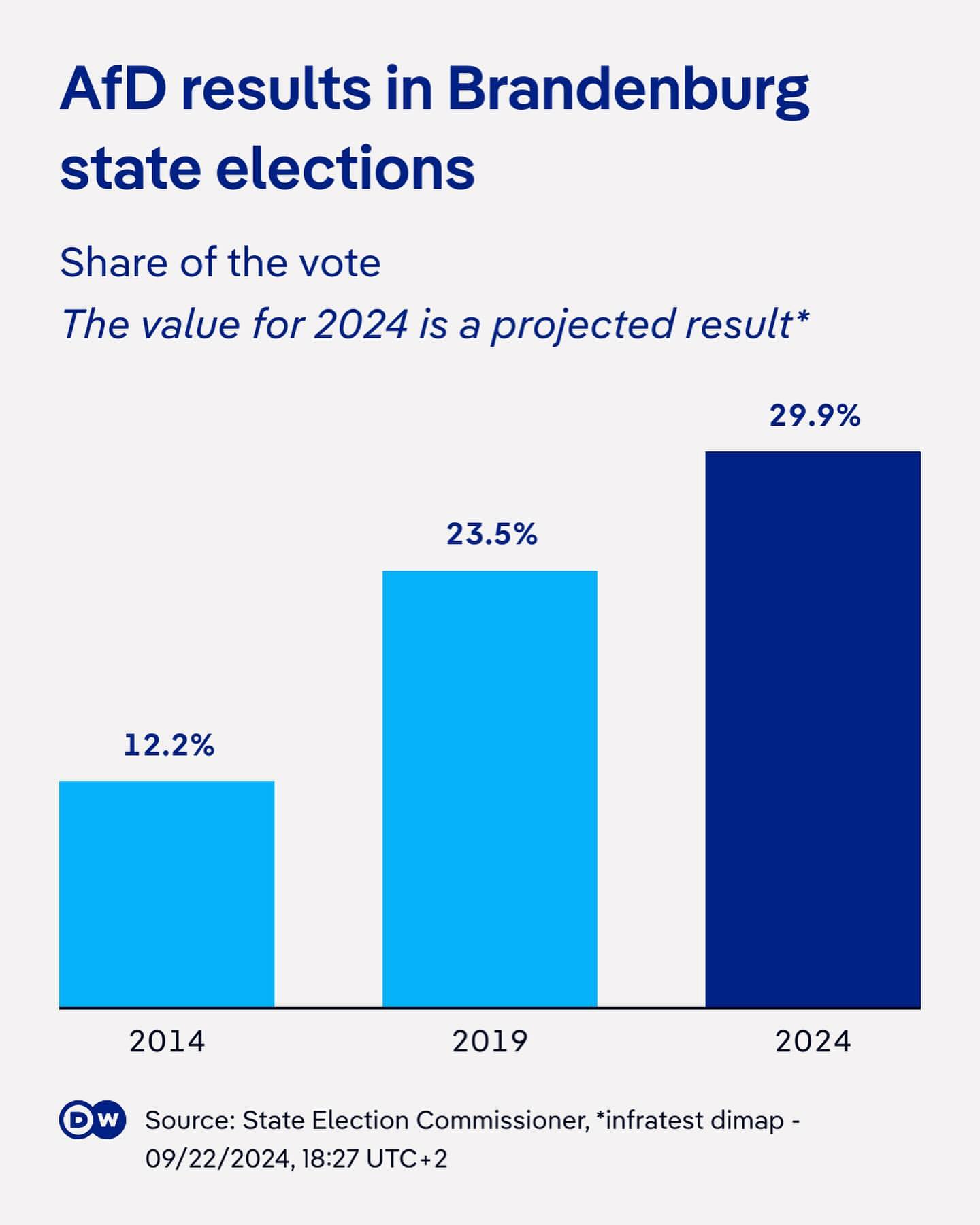 AfD saat ini dikategorikan oleh badan intelijen domestik di Brandenburg sebagai kelompok yang dicurigai memiliki paham ekstremis kanan. Meskipun SPD sempat tertinggal dari AfD selama masa kampanye pemilu, hasil pemilu ini menjadi perhatian banyak pihak, karena bisa menjadi indikator untuk pemilu federal yang akan berlangsung tahun depan.