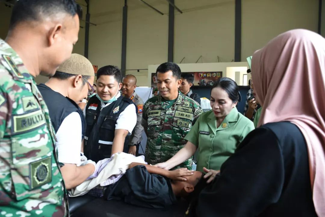 Kegiatan bakti sosial ini meliputi khitan massal, pembagian sembako, pengobatan gratis, dan penyediaan makanan gratis bagi warga. Sebelum melaksanakan video conference secara terpusat dengan Panglima TNI, Kolonel Heri Rustandi didampingi oleh Forkopimda, melakukan peninjauan ke lokasi kegiatan pengobatan dan pembagian sembako.