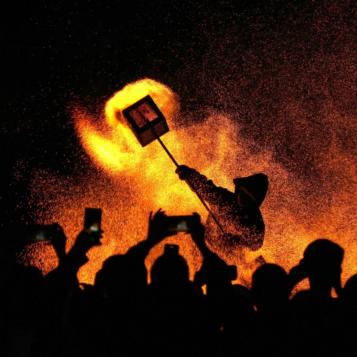 Pada tanggal 21 September 2024, seniman rakyat di Haiyang, Provinsi Shandong, Tiongkok, mengadakan pertunjukan yang sangat menakjubkan dengan melempar besi cair untuk menciptakan kembang api. Acara ini diadakan untuk memperingati festival panen petani Tiongkok yang jatuh pada tanggal 22 September tahun ini.