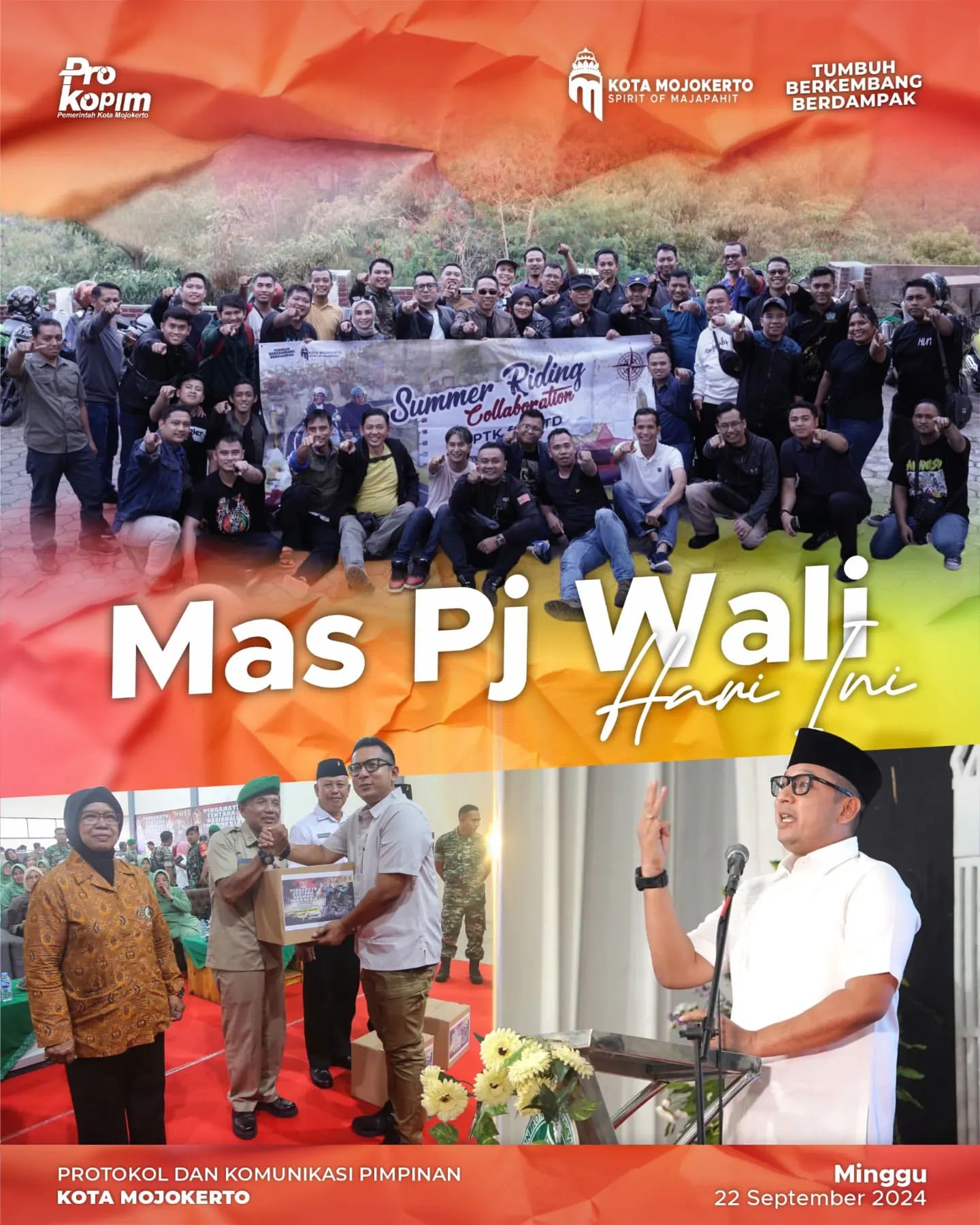 Pada hari Minggu, 23 September 2024, Pj Wali Kota Mojokerto, Moh Ali Kuncoro, mengadakan kegiatan touring bersama Ikatan Keluarga Alumni Pendidikan Tinggi Kepamongprajaan (IKAPTK) dan alumni Sekolah Tinggi Transportasi Darat (STTD) Kota Mojokerto. Kegiatan ini bertujuan untuk mempererat tali persaudaraan dan kebersamaan di antara alumni dan pemerintah kota.