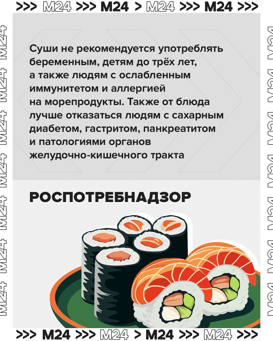 Menurut informasi yang disampaikan oleh Rospotrebnadzor, badan pengawas keamanan makanan di Rusia, tidak semua orang dapat menikmati sushi dengan aman. Sebaiknya, hindari sushi bagi ibu hamil, anak-anak, serta orang-orang dengan sistem kekebalan tubuh yang lemah dan mereka yang memiliki alergi terhadap makanan laut. Hal ini penting untuk mencegah risiko kesehatan yang dapat timbul dari konsumsi sushi yang mengandung bahan mentah.
