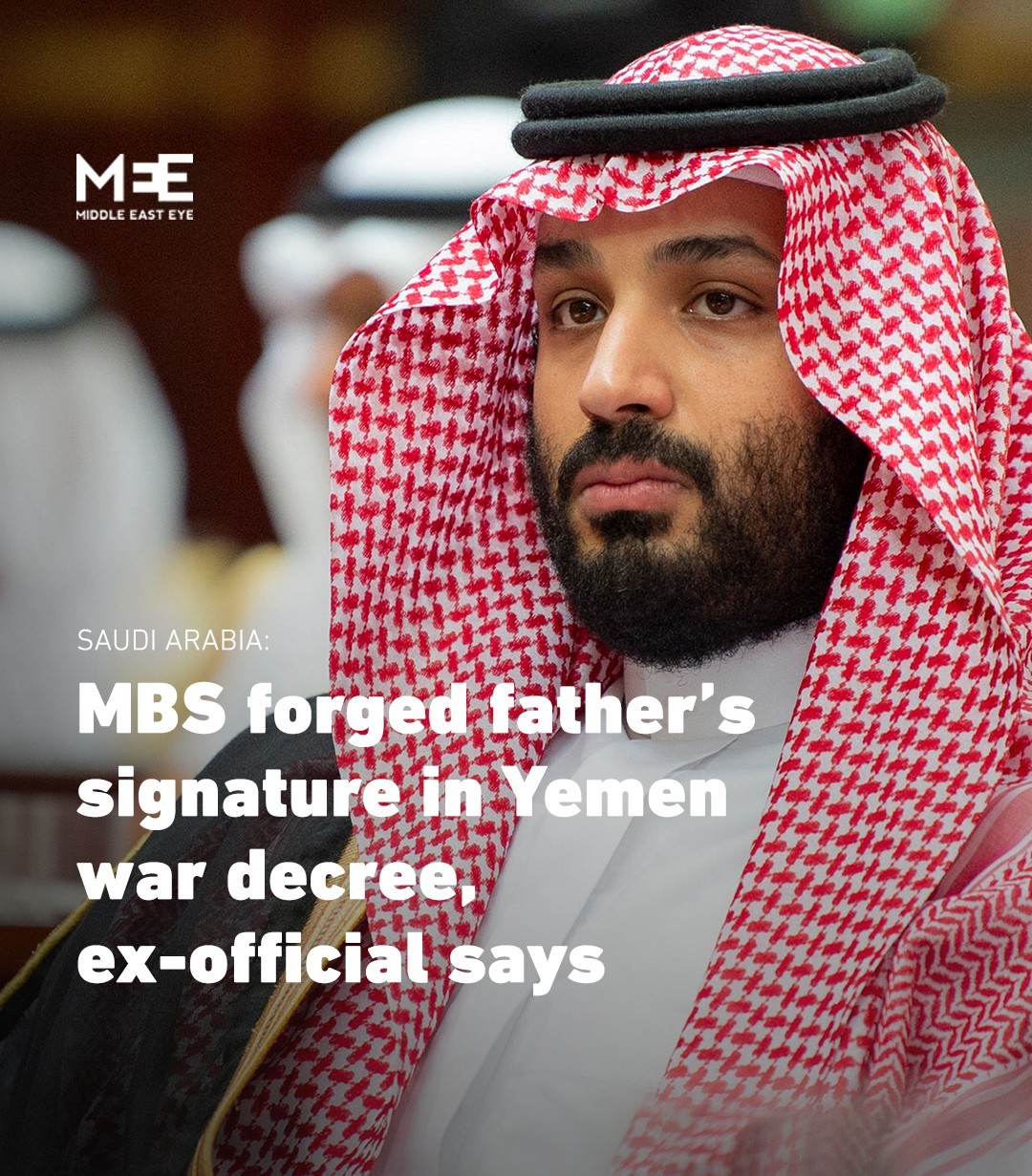 Pejabat dissiden Saudi, Saad al-Jabri, membuat tuduhan mengejutkan mengenai Pangeran Mohammed bin Salman. Dalam sebuah dokumenter BBC berjudul "The Kingdom: The World's Most Powerful Prince", Jabri mengklaim bahwa Pangeran Mohammed bin Salman telah memalsukan tanda tangan ayahnya, Raja Salman, pada sebuah dekrit kerajaan. Dekrit tersebut dikatakan telah memutuskan untuk mengerahkan pasukan darat Saudi pada awal perang saudara Yaman.