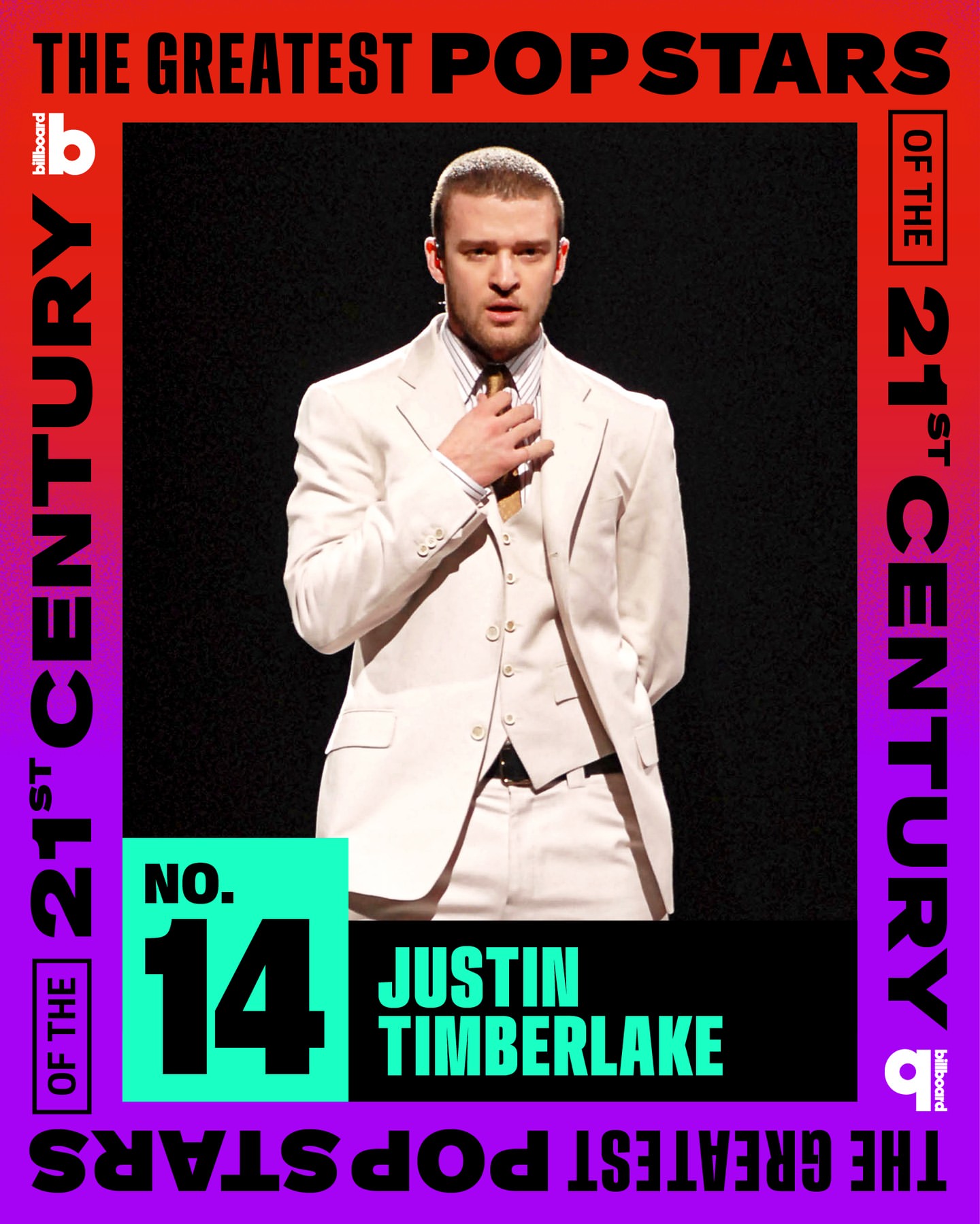 Justin Timberlake baru-baru ini menduduki peringkat ke-14 dalam daftar Billboard tentang 25 Bintang Pop Terbesar Abad 21. Hal ini menunjukkan pencapaian luar biasa dari penyanyi dan penulis lagu asal Amerika Serikat tersebut.