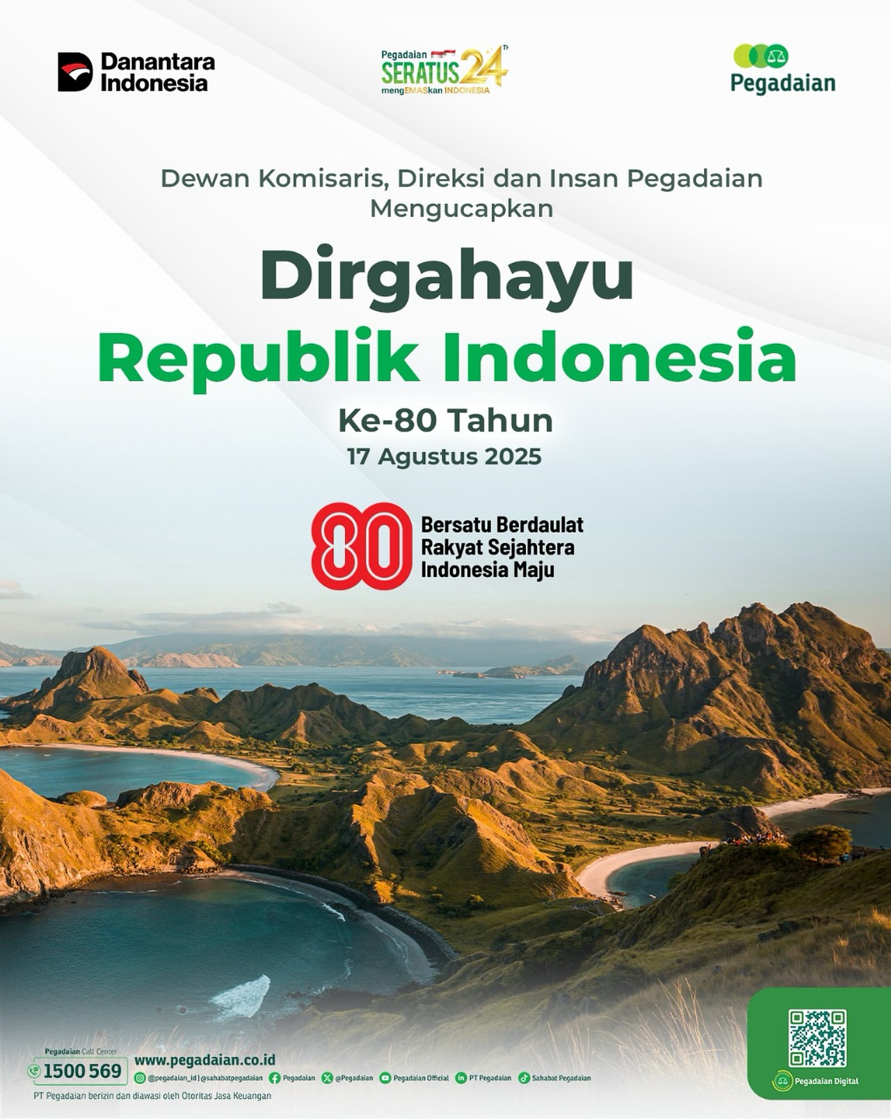 Dirgahayu Republik Indonesia ke-80! Semoga semangat perjuangan dan inovasi terus menyala dalam setiap langkah bangsa dan perusahaan seperti PT Pegadaian. Mari kita songsong masa depan Indonesia yang lebih maju dan sejahtera.