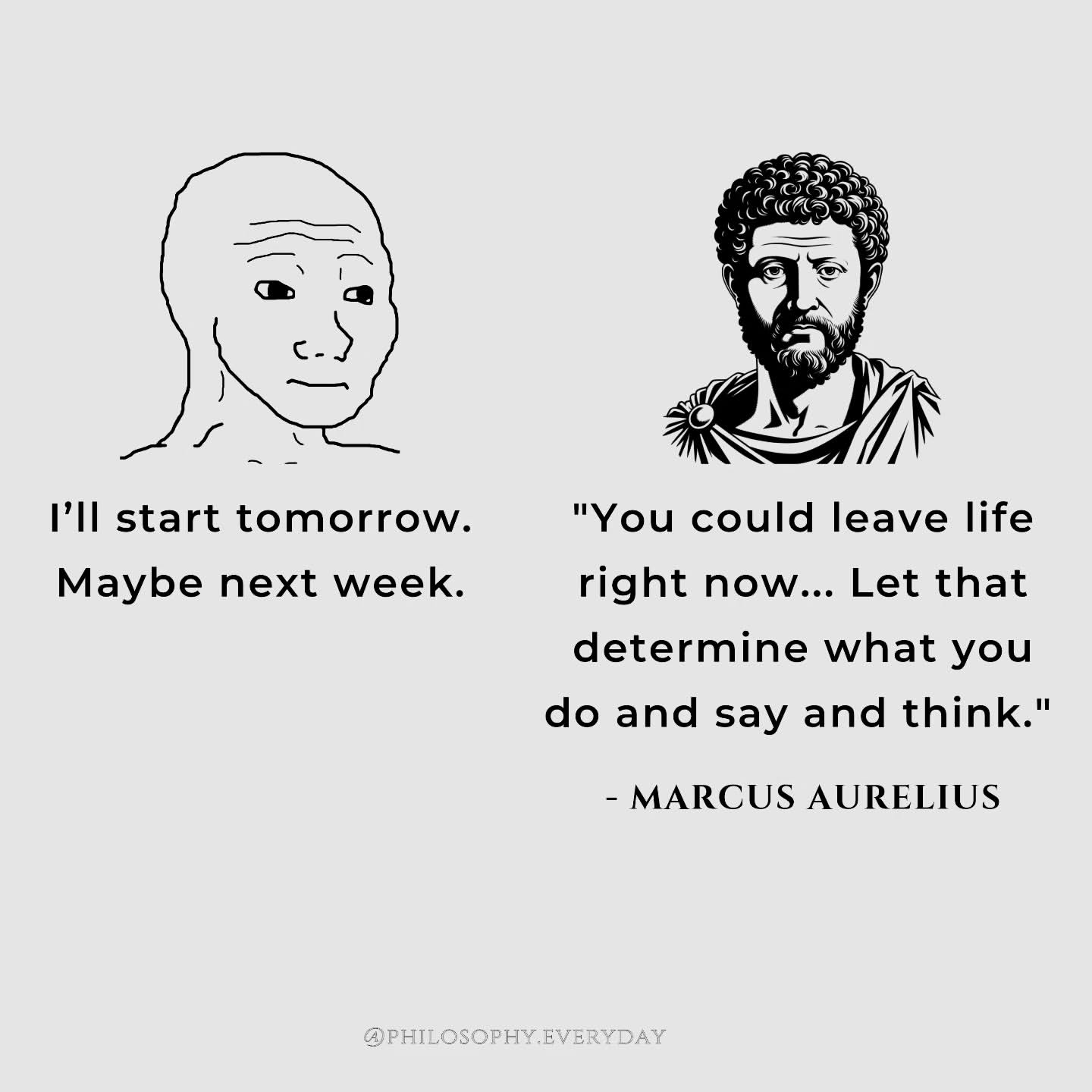 Dalam kehidupan sehari-hari, kita sering kali menunda-nunda pekerjaan dengan alasan ingin menunggu hari yang tepat. Padahal, menurut filosofi dari Marcus Aurelius, seorang filsuf dan kaisar Romawi kuno, menunda-nunda bisa berbahaya. Ia mengingatkan bahwa hidup ini sangat singkat dan kematian bisa datang kapan saja. Oleh karena itu, kita harus sadar bahwa setiap hari adalah kesempatan berharga yang tidak boleh kita sia-siakan.