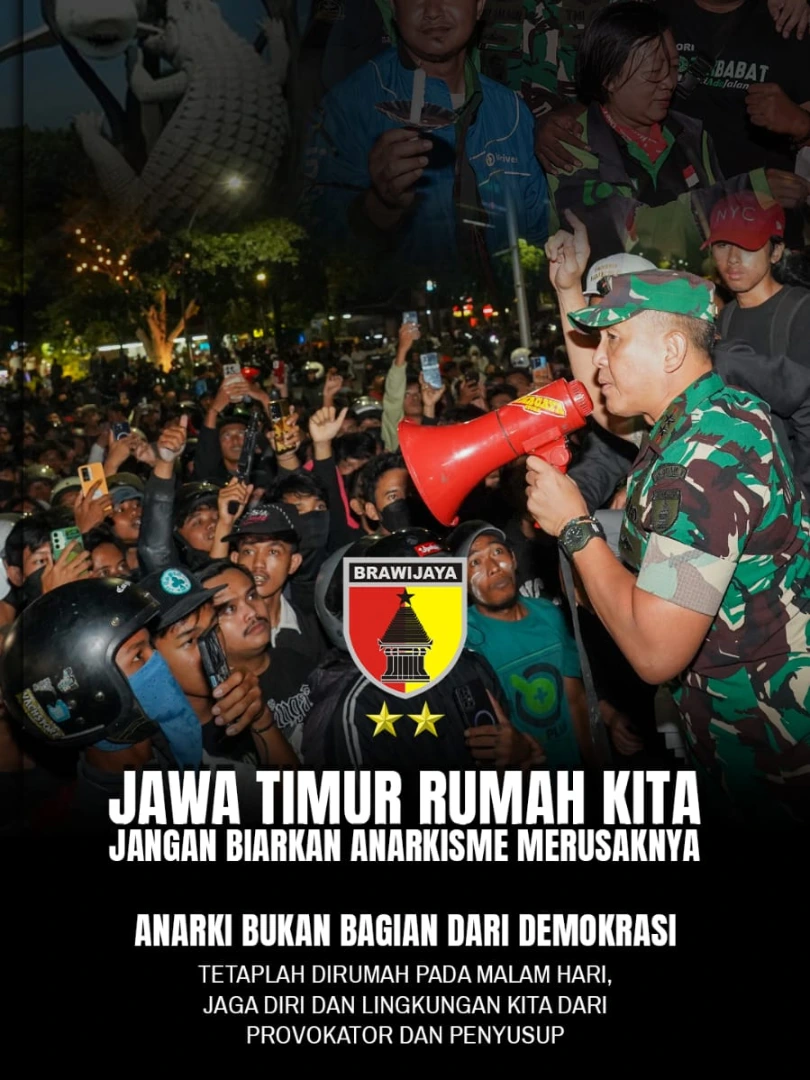 Jawa Timur kembali menegaskan komitmennya untuk menjaga keamanan dan ketertiban masyarakat dari ancaman anarkisme. Dalam sebuah acara yang dihadiri oleh berbagai aparat keamanan dan masyarakat, pihak berwenang menegaskan bahwa rumah kita, yaitu Indonesia, tidak boleh dibiarkan rusak oleh tindakan anarkis.