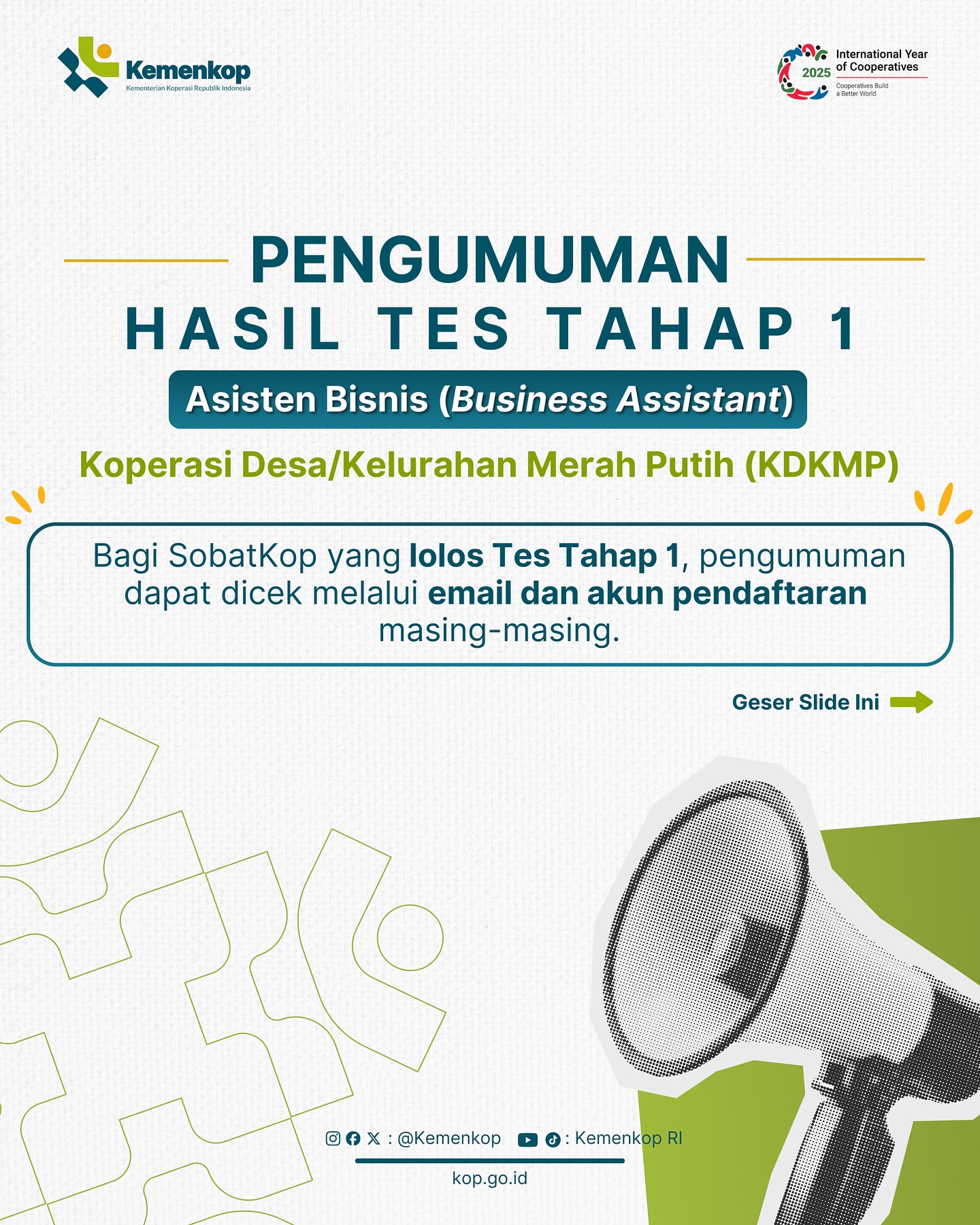 Tes Potensi Akademik Koperasi Desa Merah Putih Pengumuman Asisten Bisnis KDKMP seleksi koperasi