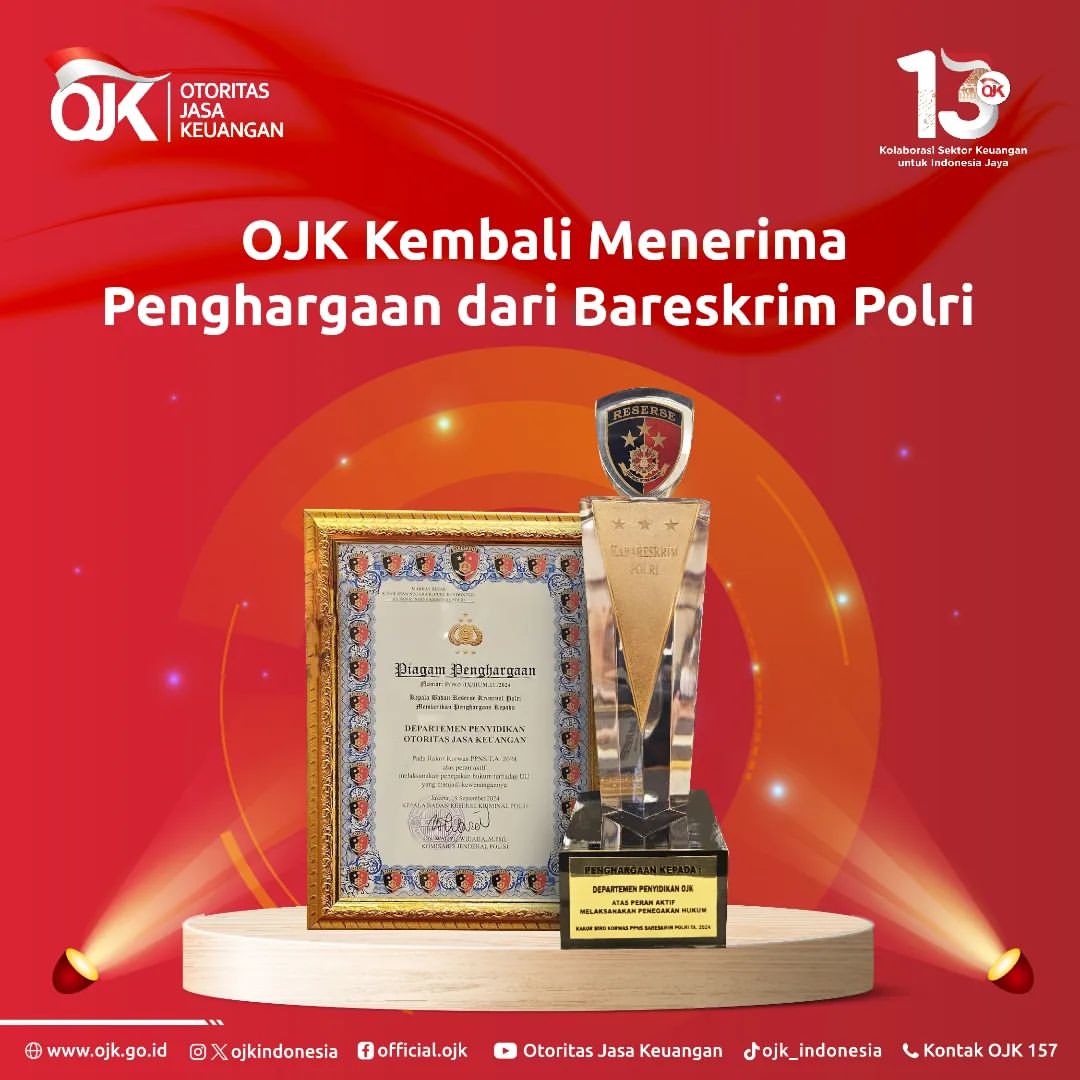 OJK mengucapkan terima kasih kepada Bareskrim Polri atas penghargaan yang diberikan. Dengan penghargaan ini, OJK berjanji akan terus berupaya untuk menjadi lebih proaktif dan kolaboratif dalam menjalankan tugasnya.
