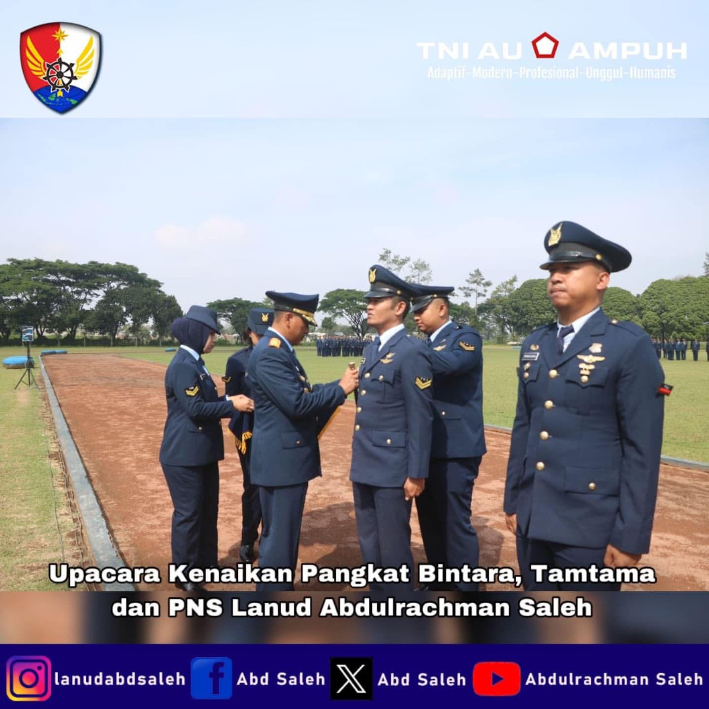 Malang, 1 Oktober 2024 – Lanud Abdulrachman Saleh mengadakan upacara kenaikan pangkat untuk Bintara, Tamtama, dan Pegawai Negeri Sipil (PNS) di Lapangan Apel Dirgantara. Upacara ini dipimpin oleh Komandan Lanud Abdulrachman Saleh, Marsma TNI Firman Wirayuda, S.T., M. Soc.Sc.
