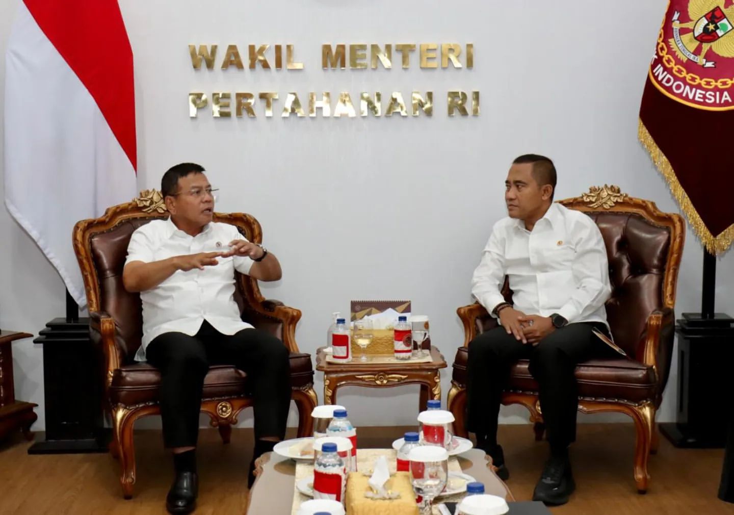 JAKARTA – Pada Kamis, 3 Oktober 2023, Wakil Menteri Pertahanan Republik Indonesia, M. Herindra, menerima kunjungan audiensi dari Kepala Badan Nasional Penanggulangan Terorisme (BNPT), Komjen Pol. Eddy Hartono beserta jajarannya. Pertemuan ini berlangsung di ruang kerja Wamenhan dan membahas strategi penanggulangan terorisme di Indonesia.