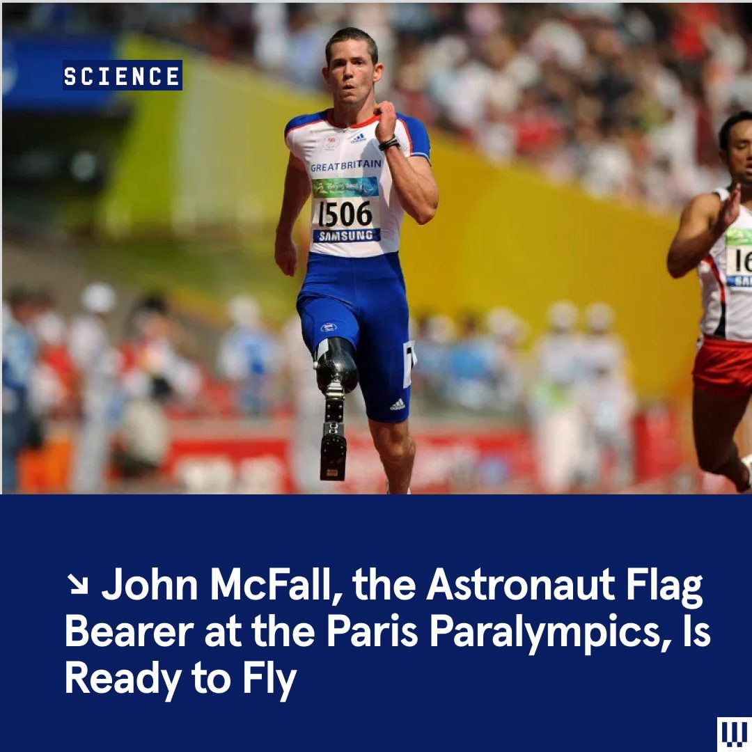 John McFall, seorang atlet berprestasi dan para-astronot pertama, terpilih sebagai pembawa bendera untuk Paralimpiade 2024 di Paris. Pemilihan ini diumumkan pada upacara pembukaan, di mana ia mewakili 168 negara peserta, termasuk Britania Raya dan Irlandia Utara.