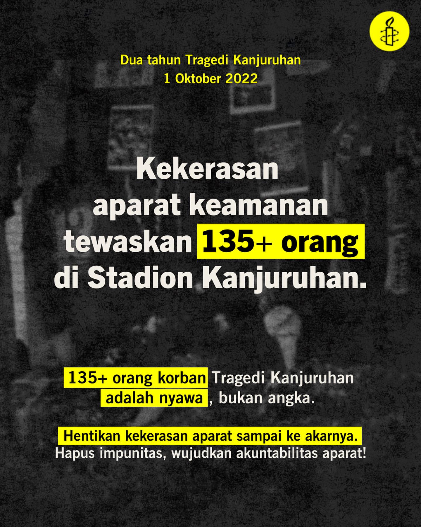 Pada tanggal 1 Oktober 2024, masyarakat Indonesia memperingati dua tahun terjadinya Tragedi Kanjuruhan, sebuah insiden tragis yang menewaskan lebih dari 135 orang suporter sepak bola. Kejadian ini berlangsung di Stadion Kanjuruhan, Malang, ketika aparat kepolisian menggunakan gas air mata dan alat pengendalian huru-hara lainnya secara berlebihan terhadap para suporter yang hadir.