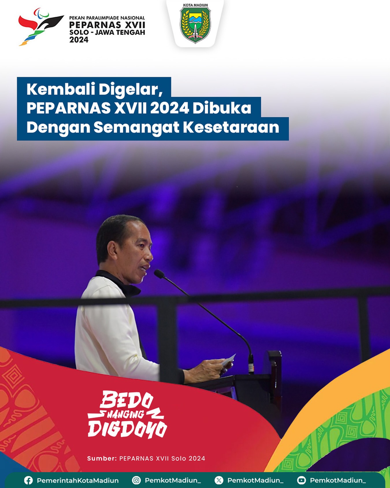 SURAKARTA – Pekan Paralimpiade Nasional (PEPARNAS) XVII resmi dibuka oleh Presiden Joko Widodo pada Minggu malam, 6 Oktober 2024, di Stadion Manahan, Surakarta, Jawa Tengah. Acara ini dihadiri oleh ribuan penonton yang memberikan dukungan kepada para atlet difabel dengan semangat yang tinggi.