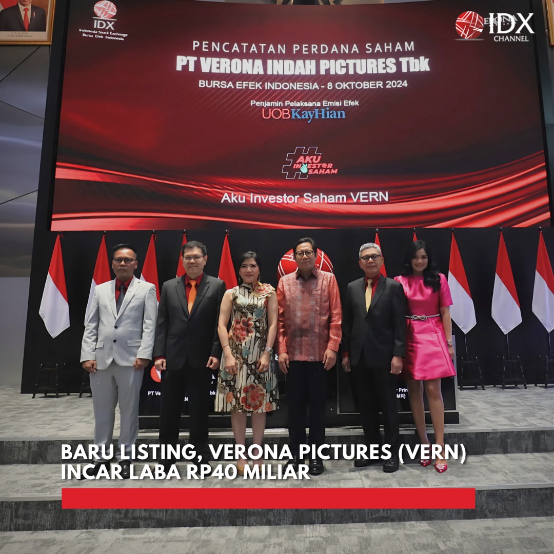 PT Verona Indah Pictures Tbk (VERN), sebuah emiten rumah produksi, menargetkan laba bersih sebesar Rp40 miliar sepanjang tahun 2024. Target ini disampaikan manajemen perusahaan setelah mereka berhasil membukukan laba sebesar Rp8,69 miliar pada kuartal pertama tahun ini.