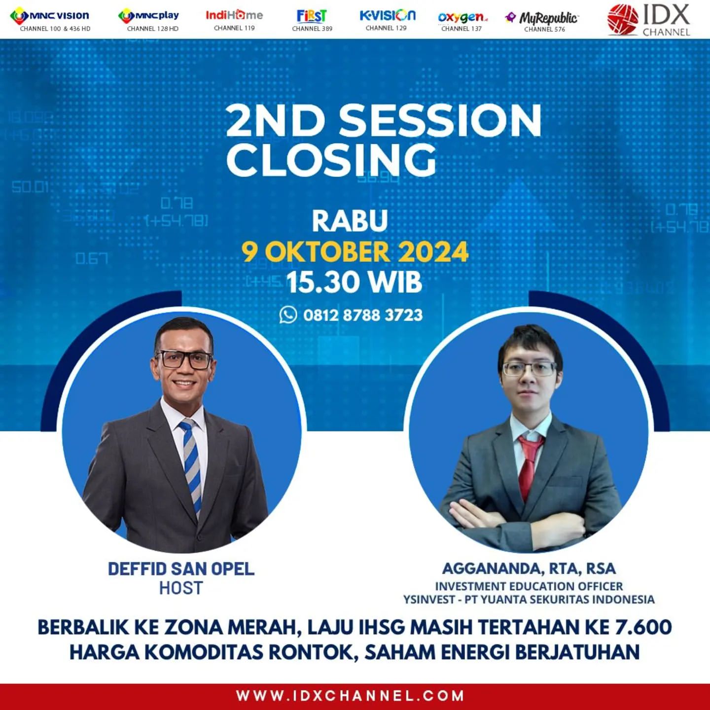 Bagi yang ingin mengetahui lebih dalam tentang perkembangan IHSG dan rekomendasi saham, dapat menyaksikan pembahasan di IDX 2nd session closing yang akan disiarkan secara langsung hari ini pukul 15:30 WIB. Siaran dapat disaksikan melalui IDX Channel di berbagai platform seperti MNC VISION Ch 100, MNC PLAY Ch 128 HD, INDI HOME Ch 119, FIRST MEDIA Ch 389, K-VISION Ch 129, OXYGEN Ch 137, dan MY REPUBLIK Ch 576. Selain itu, juga tersedia siaran langsung di www.idxchannel.com serta aplikasi IDX Channel TV di APPS store.
