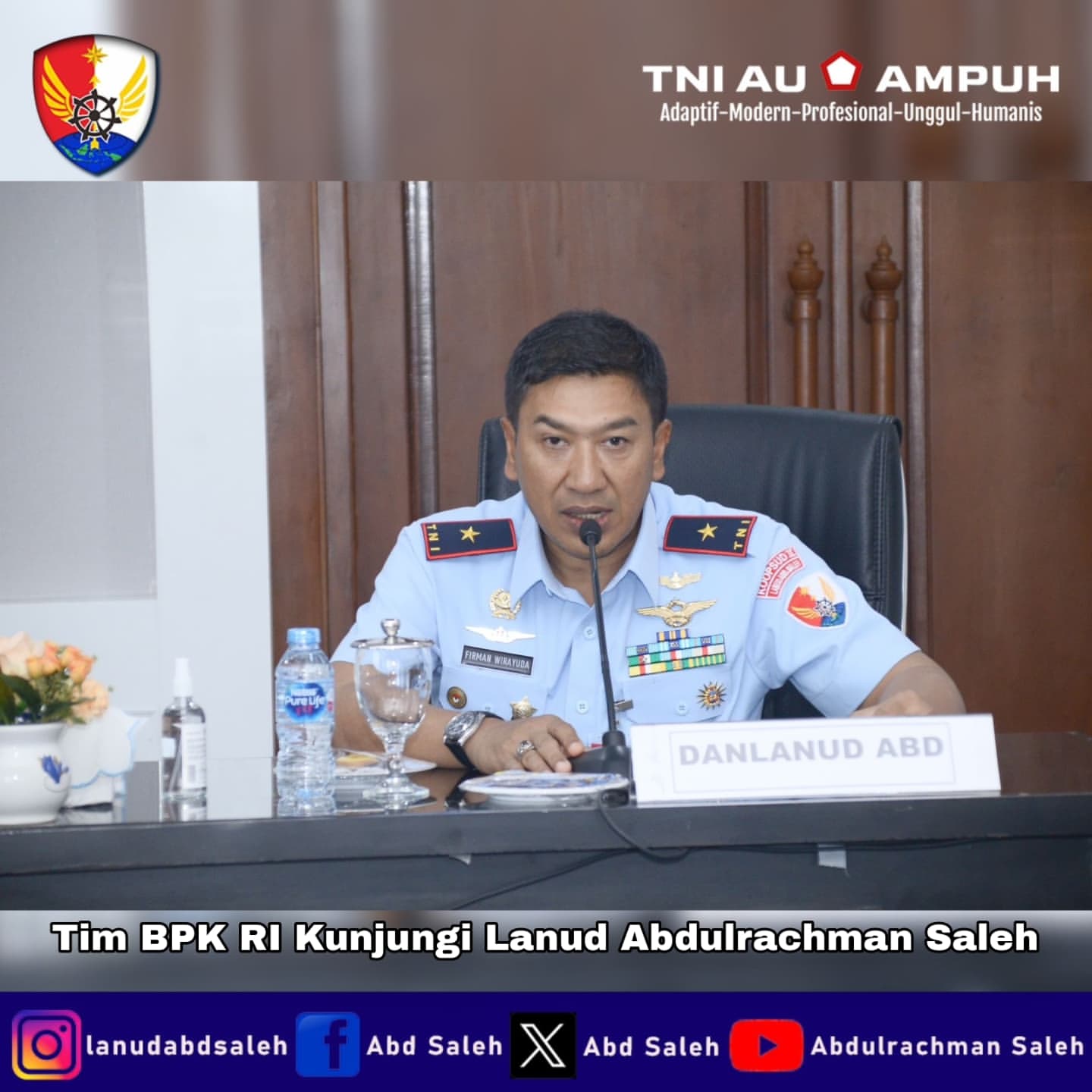 Kunjungan BPK RI dihadiri oleh Kepala Dinas Operasi Lanud Abd Saleh, Kolonel Pnb Taufik Nur Cahyanto, M.Han., M.M, serta perwira staf Lanud Abd Saleh dan tim BPK RI.