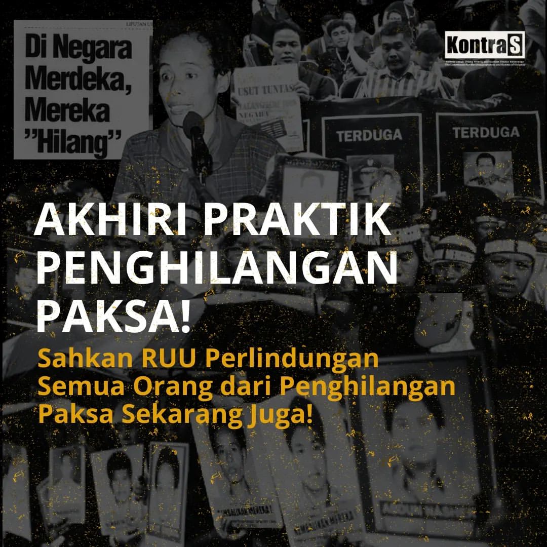 Di Indonesia, penghilangan paksa bukanlah isu baru. Praktik ini telah terjadi sejak masa Orde Baru dan terus berlanjut hingga sekarang. Kasus-kasus terkenal terjadi pada tahun 1965-1966, serta berbagai pelanggaran hak asasi manusia (HAM) berat lainnya. Salah satu contohnya adalah peristiwa yang menimpa para demonstran pada aksi Reformasi Dikorupsi 2019 dan penolakan terhadap Undang-Undang Omnibus Law 2020.